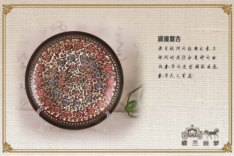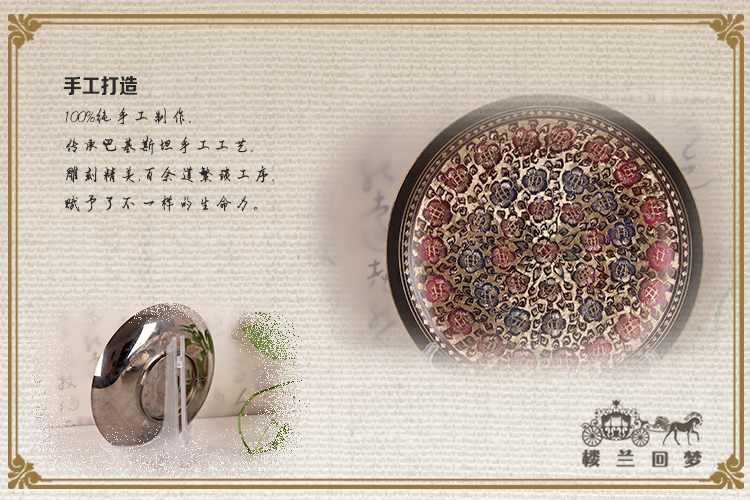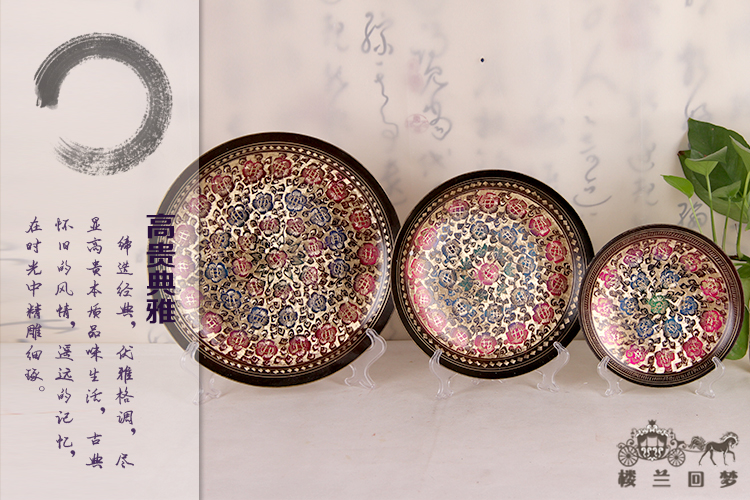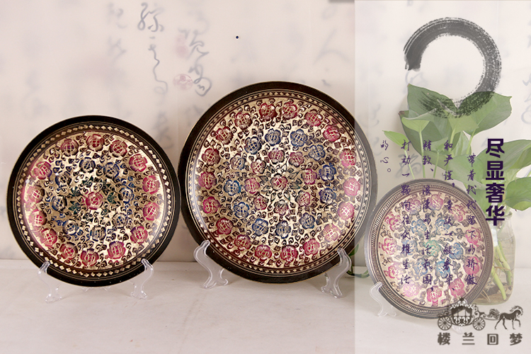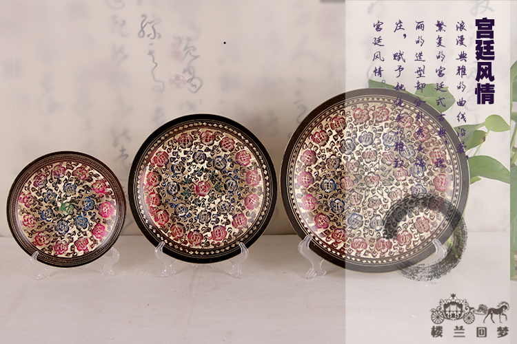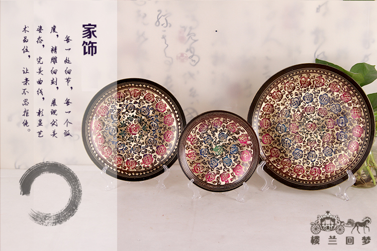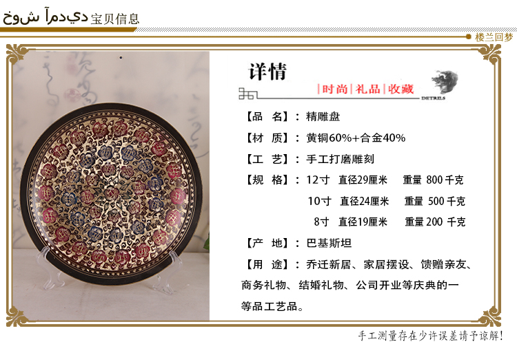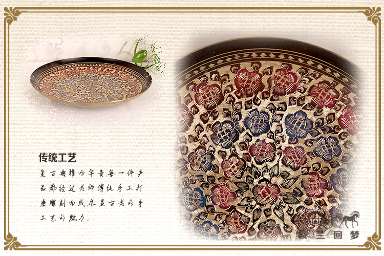 銅盤擺件手工雕刻銅器黑七彩工藝品掛盤看盤坐盤裝飾品盤子送支架1入