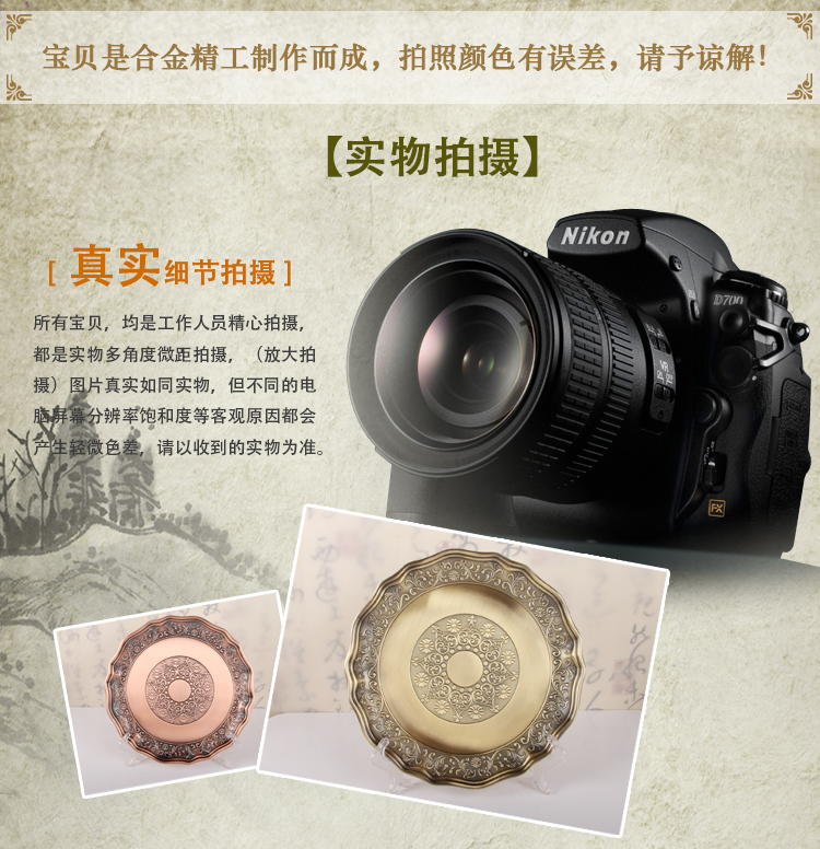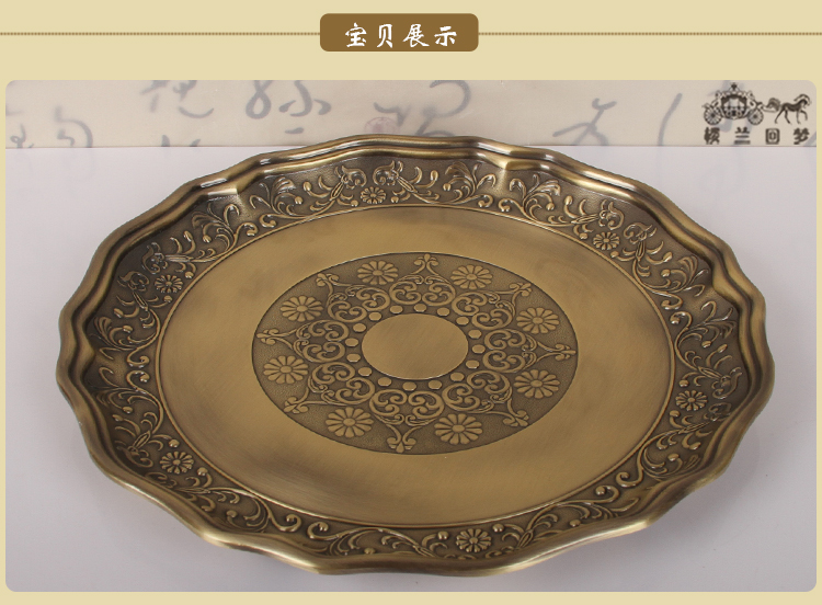 復古圓形盤子大號中式客廳金屬茶盤酒杯盤零食水果盤結婚水杯托盤1入
