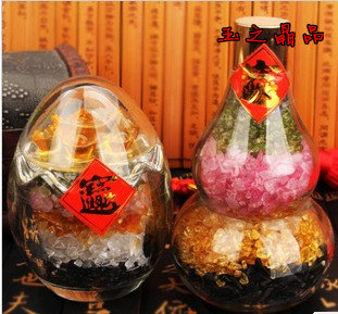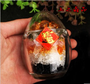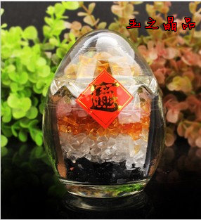 水晶七星陣葫蘆款碎石五彩蛋五行蛋能量石擺件 招財進寶擺件1入