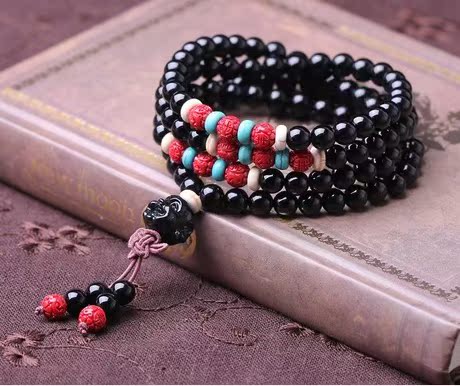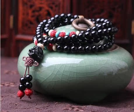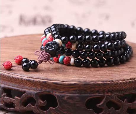 黑瑪瑙手鏈108顆佛珠 天然黑瑪瑙配佛頭手鏈1入
