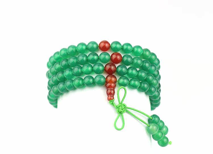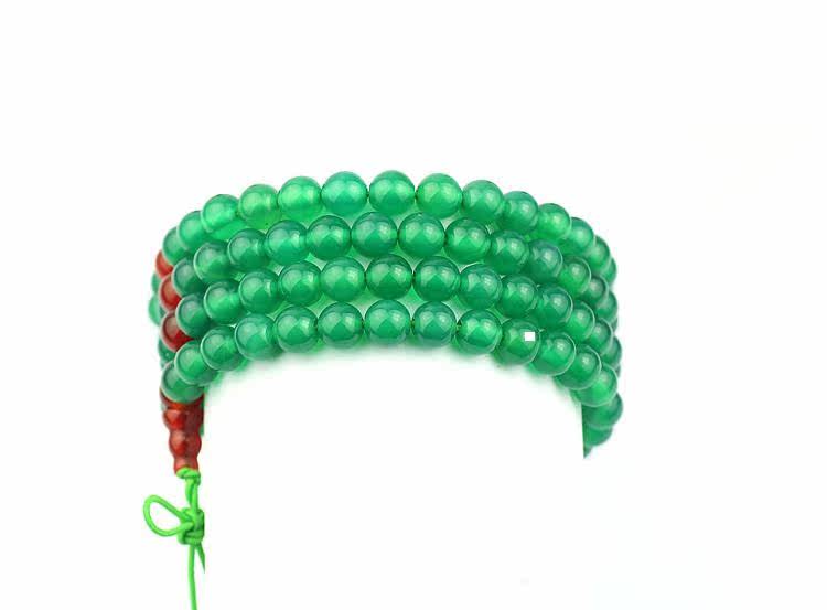 天然綠瑪瑙配紅瑪瑙隔珠108顆佛珠手鏈多層多圈水晶念珠1入