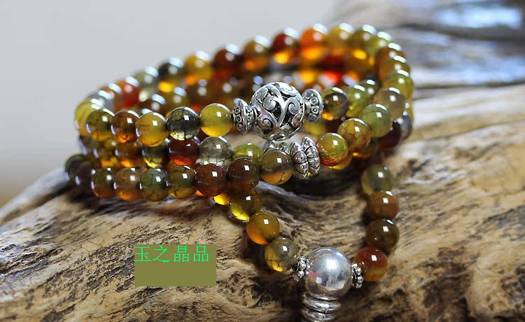 龍紋石瑪瑙108顆佛珠手鏈 配藏銀1入