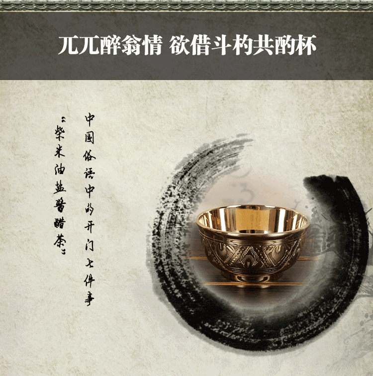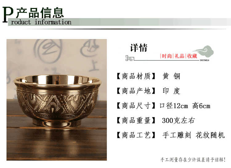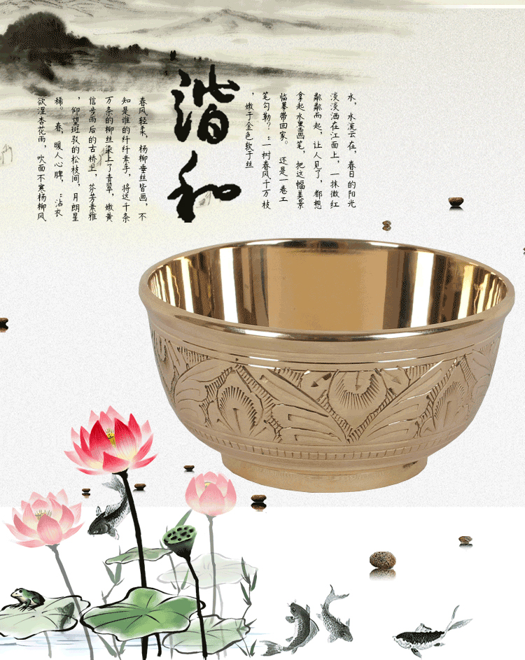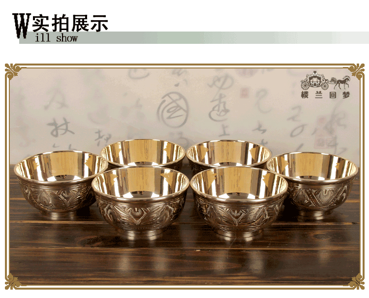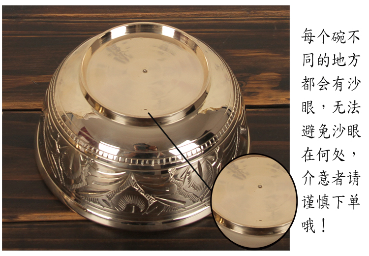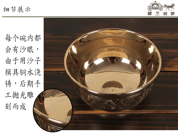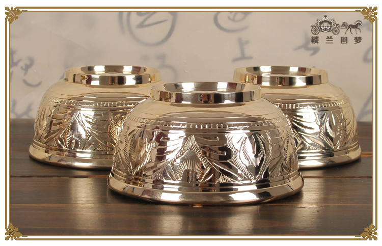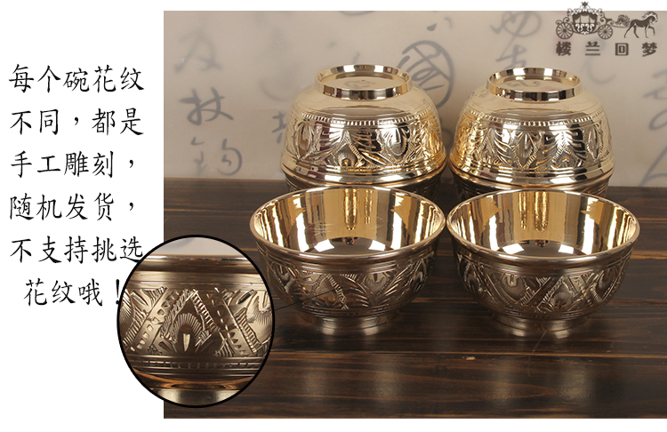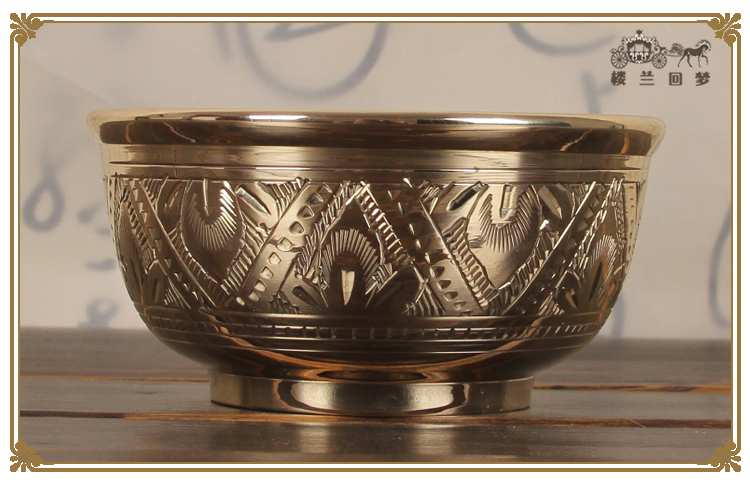 進口加厚純銅碗 家用餐具高檔刻花米飯碗5英寸純黃銅碗結婚金飯碗1入