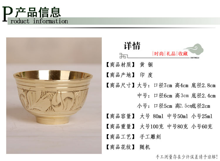 黃銅小酒杯白酒杯純銅圣水杯小酒盅家用一口杯云吞杯一兩杯銅酒杯1入