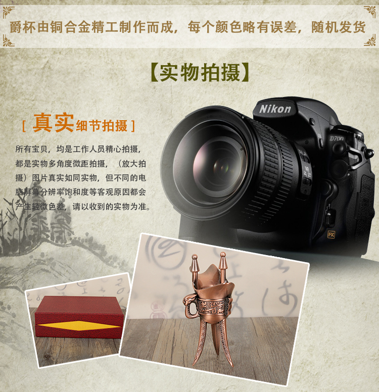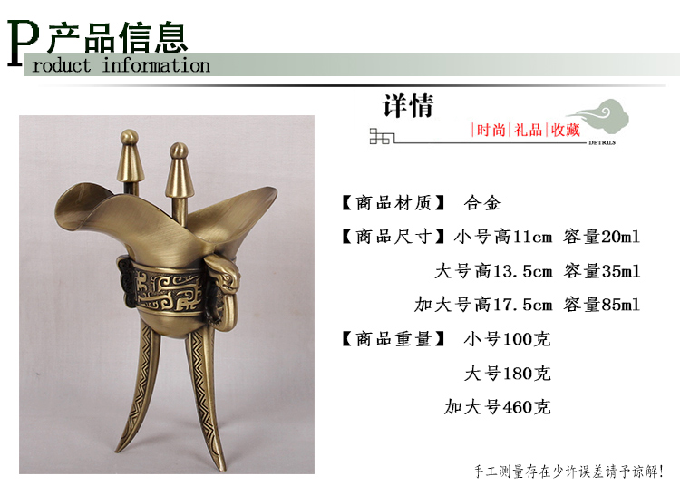高腳杯仿古樽婚慶交杯酒杯復古青銅爵杯古代帝王杯家用創意白酒杯1入