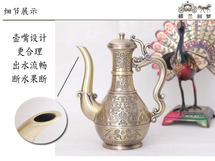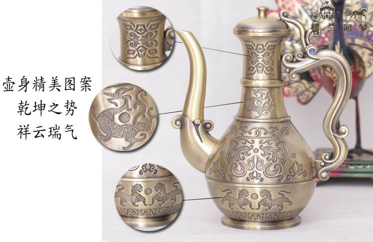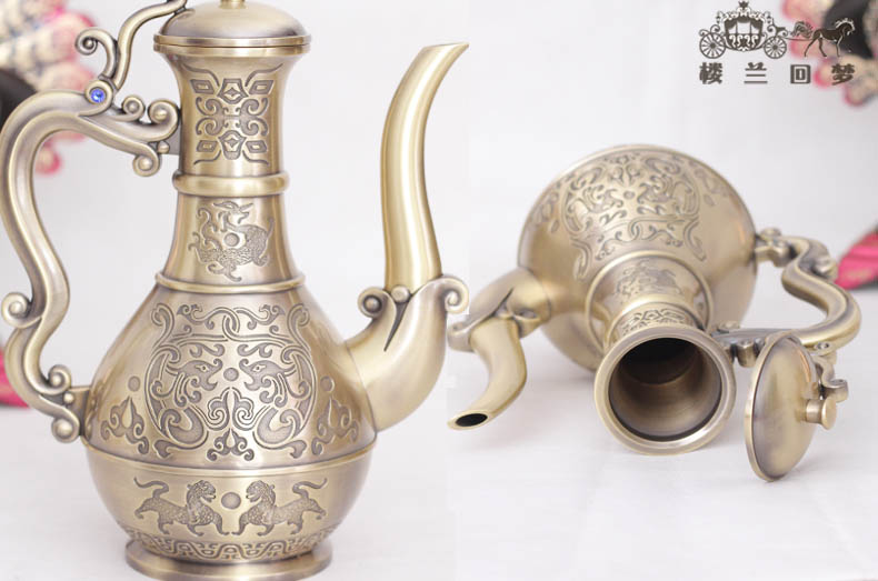 俄羅斯青銅酒壺仿古銅器婚慶酒具歐式藝術復古黃酒壺家用白酒酒壺1入