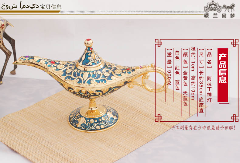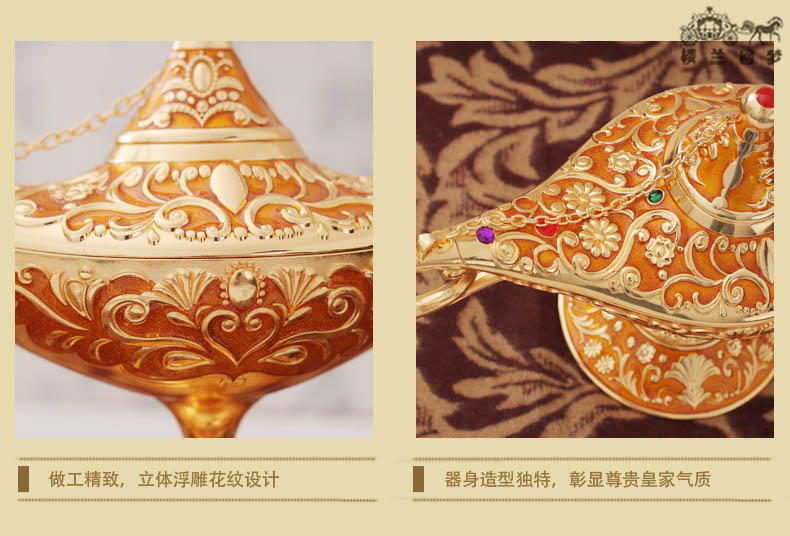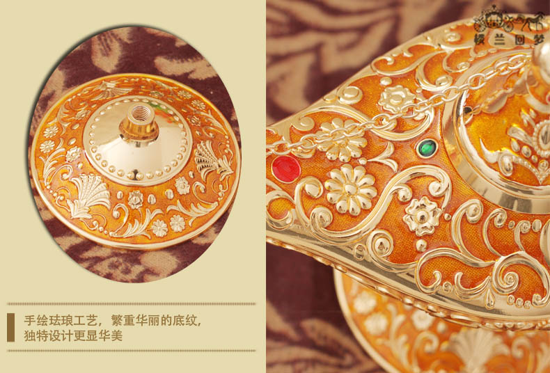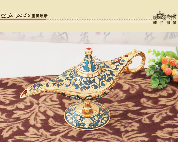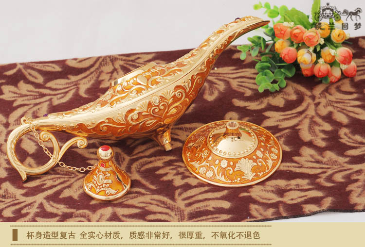 錫器復古典許愿燈擺件 新款彩錫阿拉伯神燈 俄羅斯阿拉丁神燈大號1入