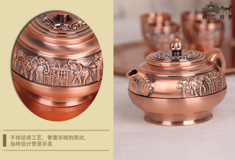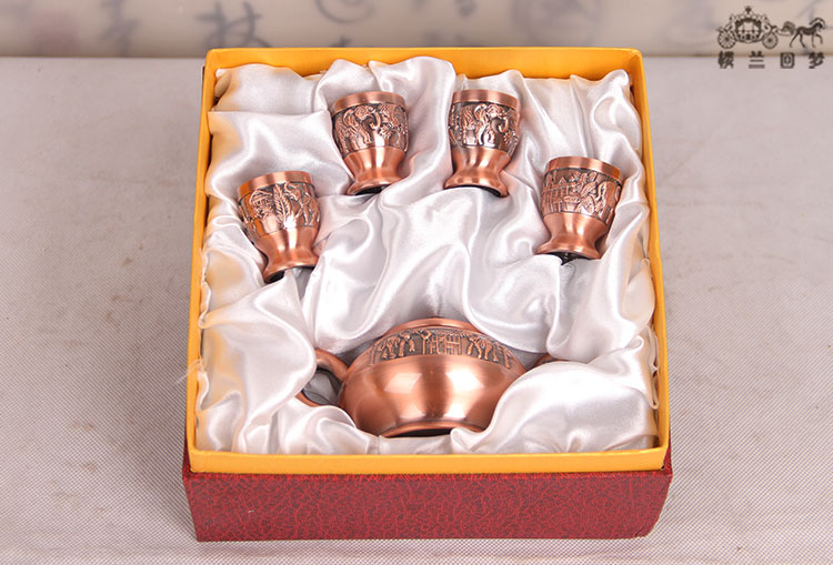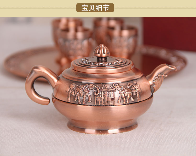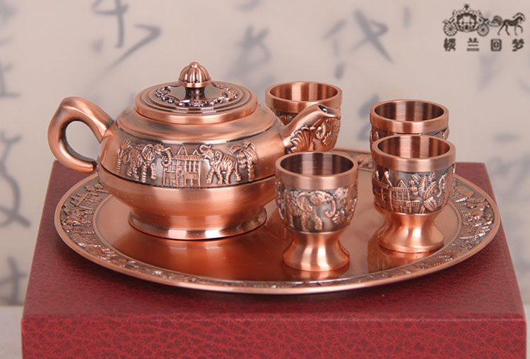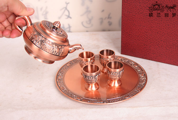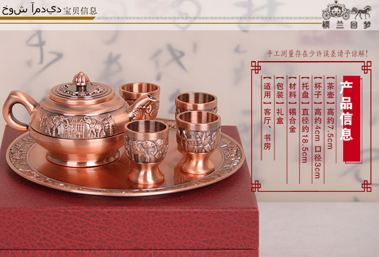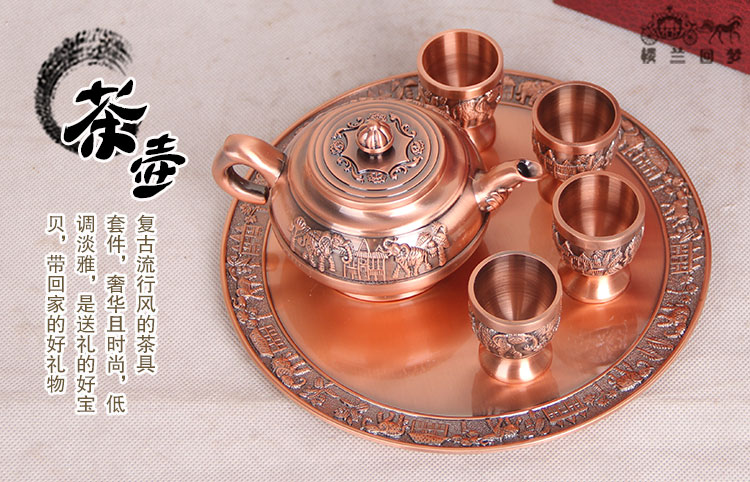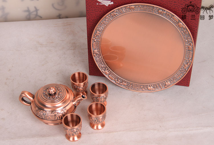 青銅器商務禮品工藝品擺件銅制套裝錫罐青銅茶具茶壺四只茶杯托盤1入