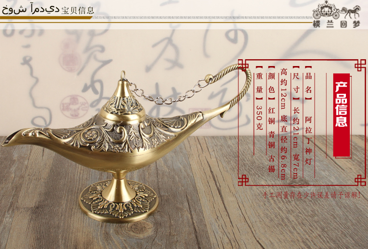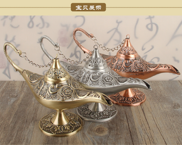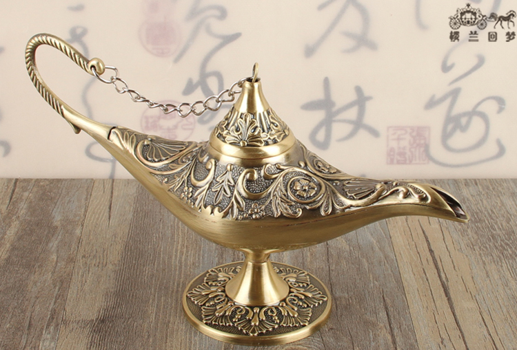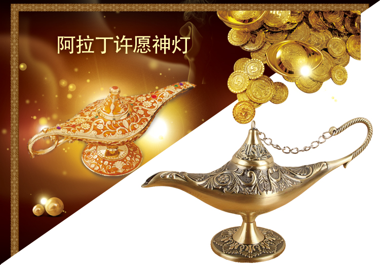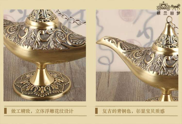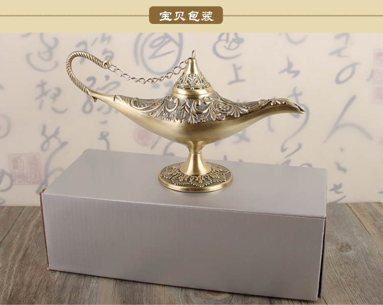 許愿燈擺件復古特色阿拉丁神燈家居裝飾品喬遷禮物玄關擺放小物件1入