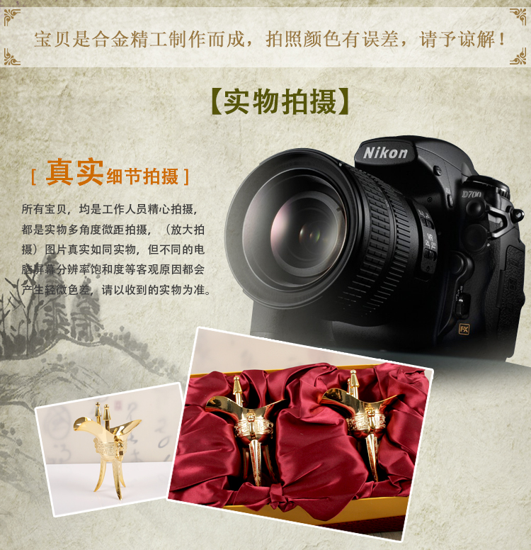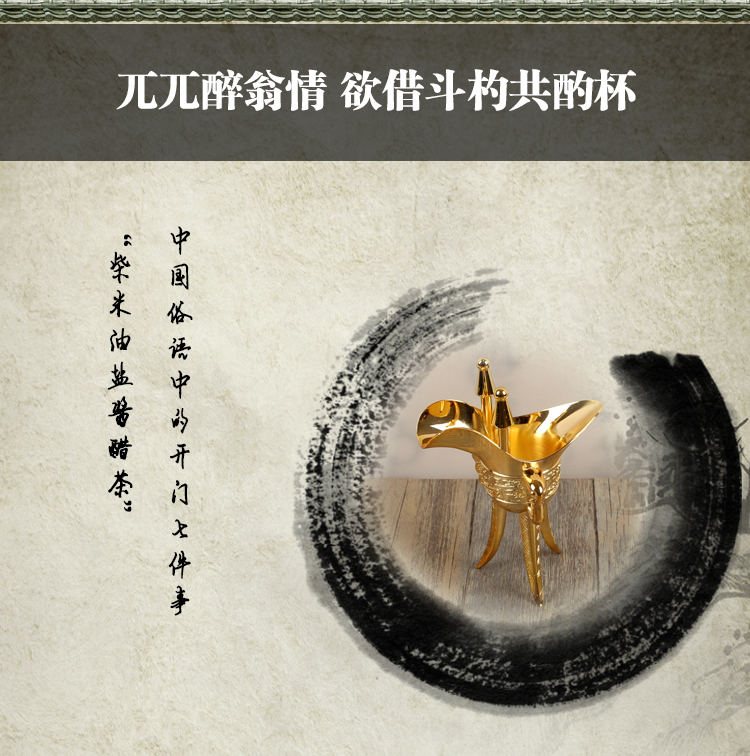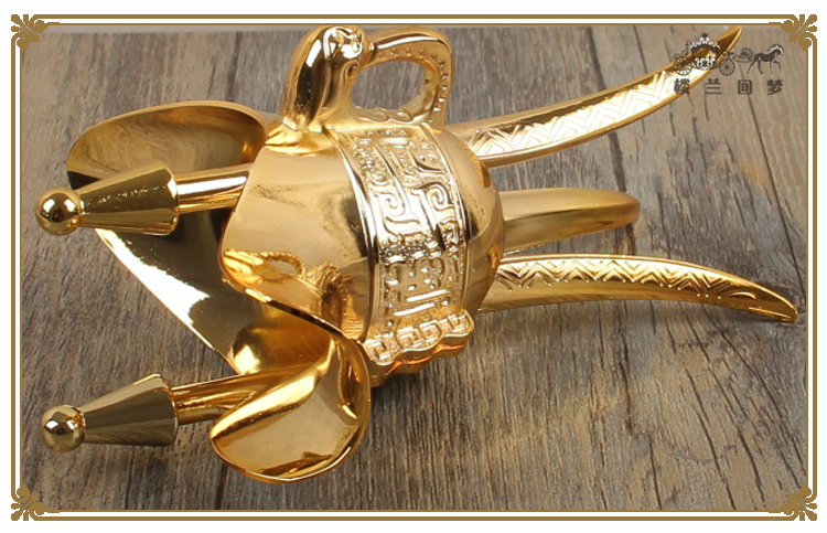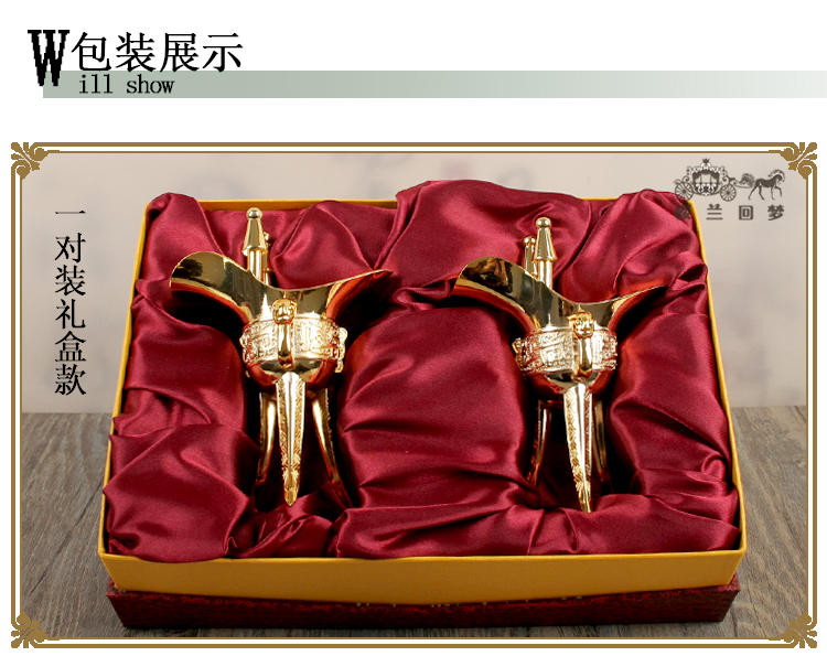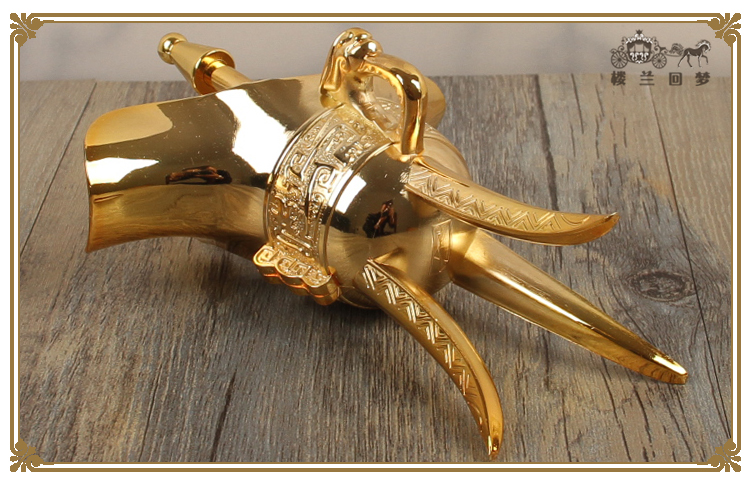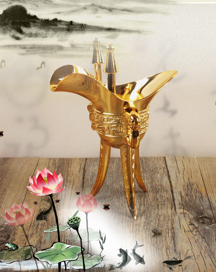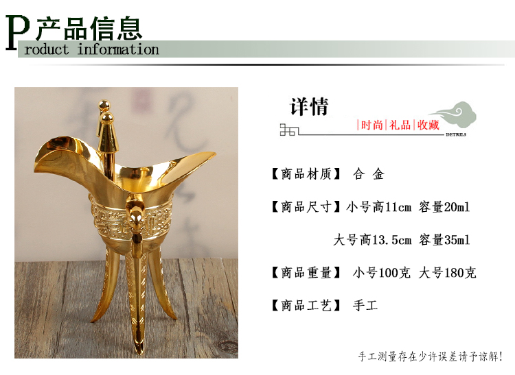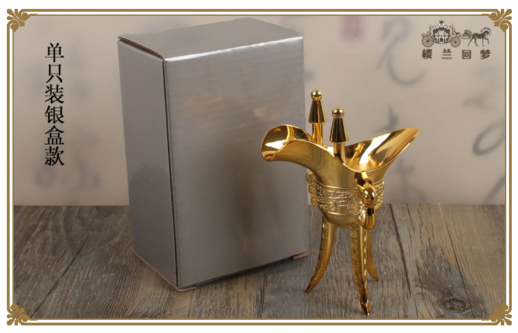金色爵杯酒杯仿古白酒杯中式交杯高腳杯金屬三角杯古酒具古風酒盞1入