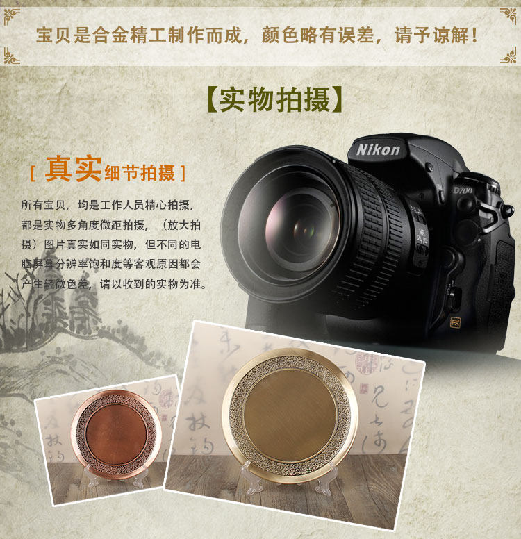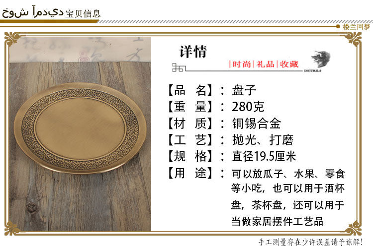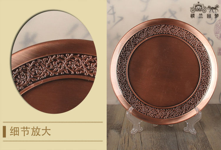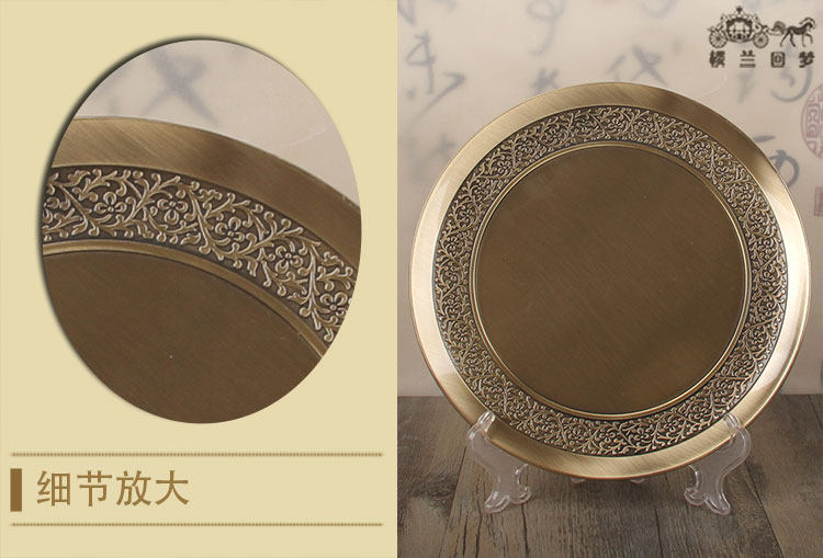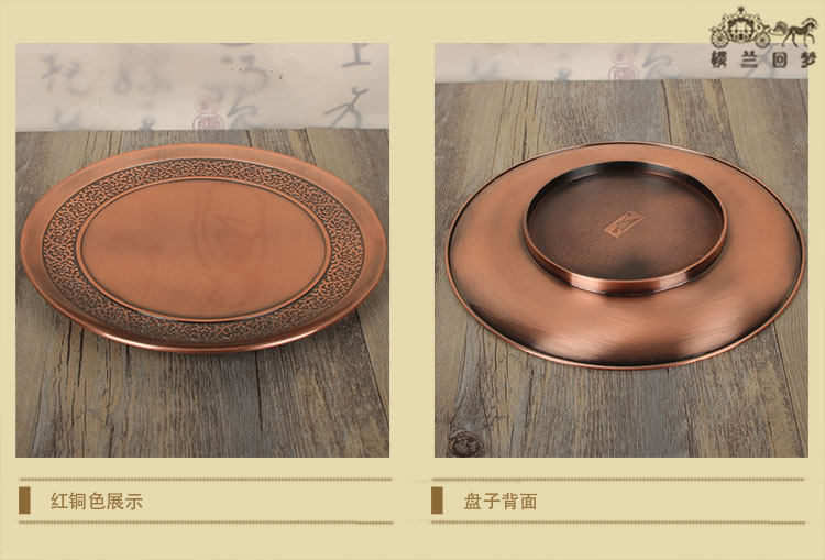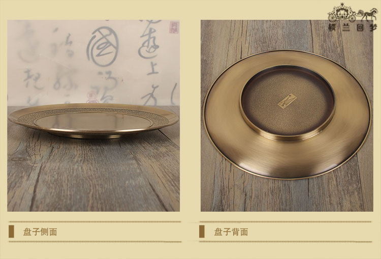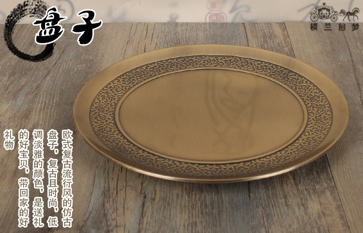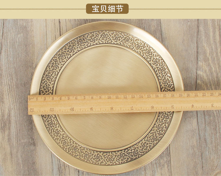 歐式盤子圓形復古酒盤 個性家用茶盤創意圓托盤日式8寸青銅盤擺件1入