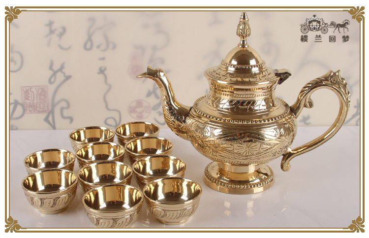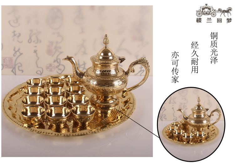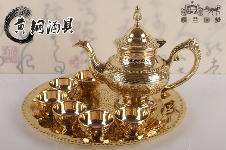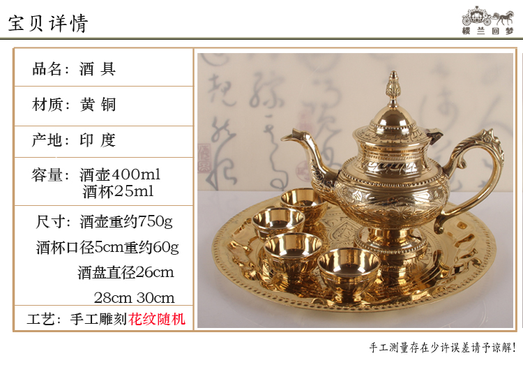 銅酒具套裝中式家用白酒分酒器龍嘴酒壺仿古酒杯25ml純銅酒盤成套1入
