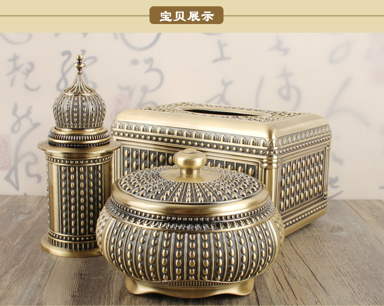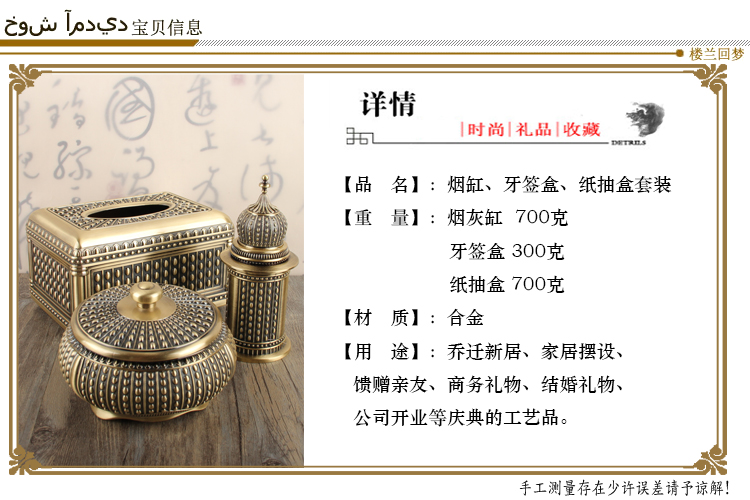 高檔紙抽盒牙簽盒煙灰缸套裝新婚家居擺件紙巾盒歐式煙缸時尚禮品1入