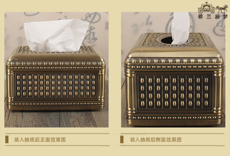 歐式復古紙巾盒 創意家用茶幾餐廳抽紙盒 奢華餐桌客廳餐巾紙抽盒1入