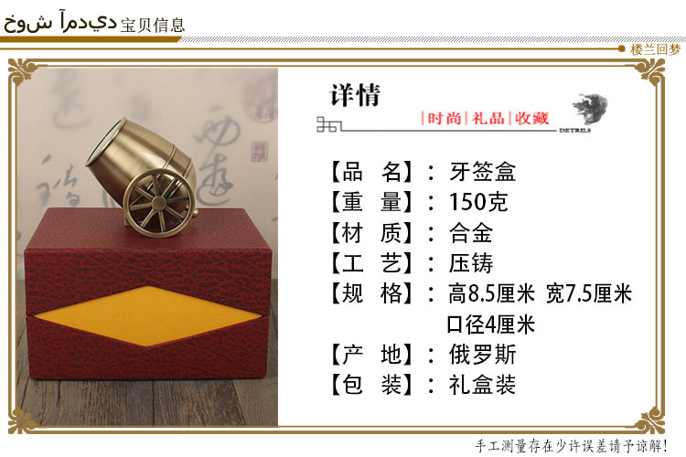 大炮牙簽筒家用餐廳北歐創意軍事迷金屬牙簽盒高檔餐桌擺件禮盒裝1入