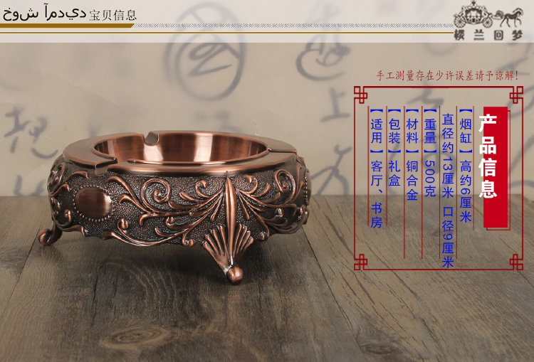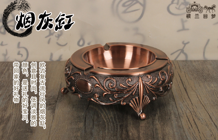 家用煙灰缸復古懷舊紅銅合金煙缸 創意個性男士禮物家居客廳煙缸1入