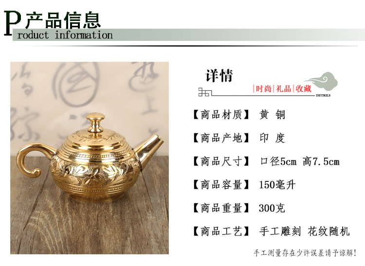 迷你功夫茶壺 進口純銅茶具純手工泡茶器單壺家用手抓小茶壺150ml1入
