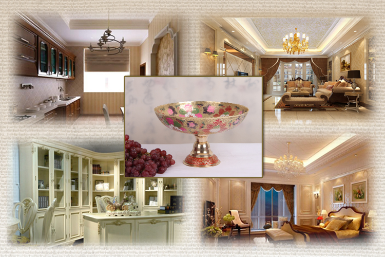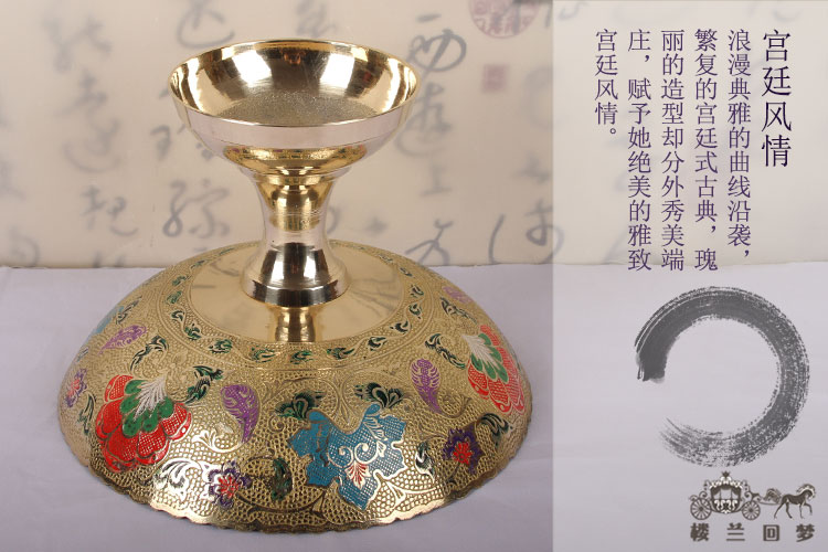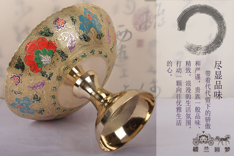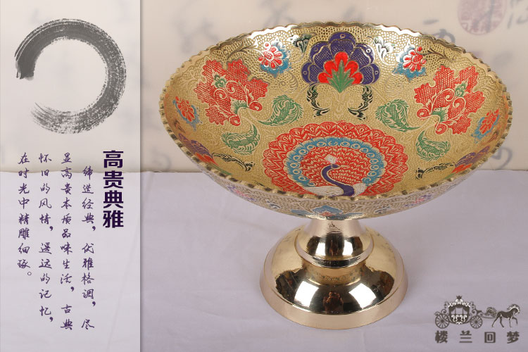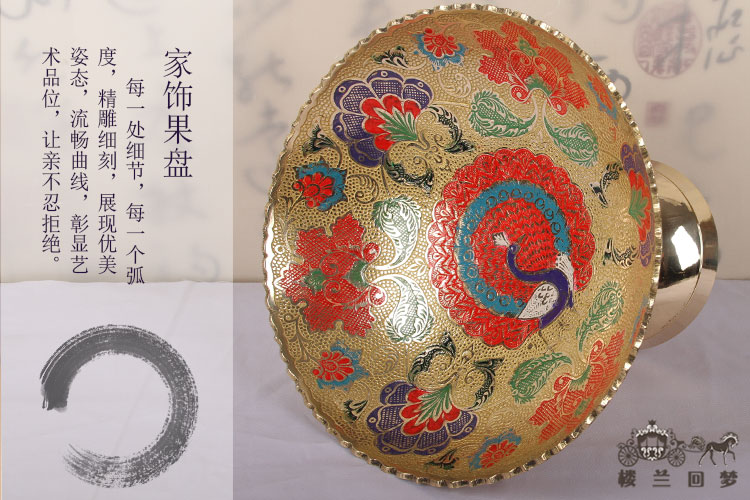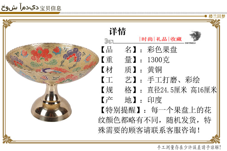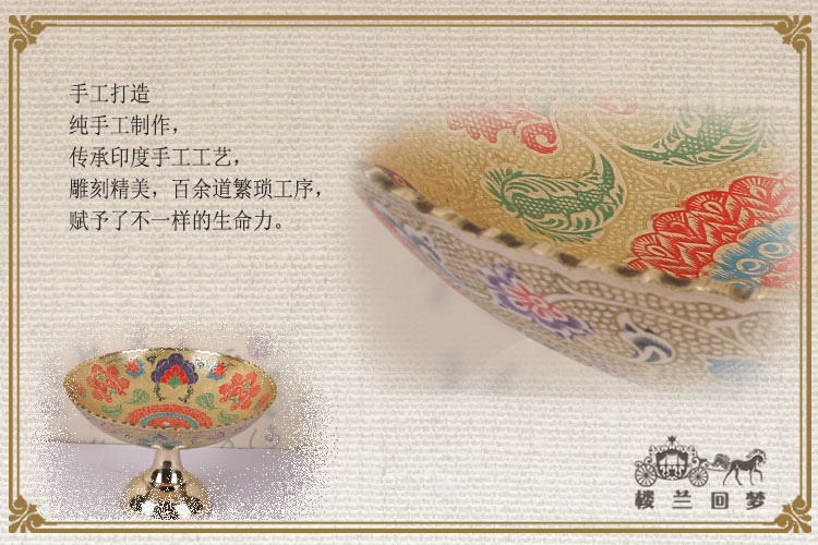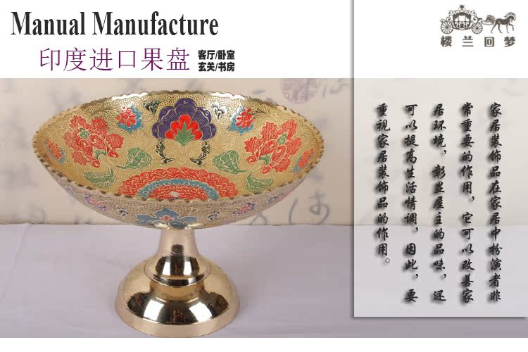 印度進口水果盤大號純銅手工家居裝飾品客廳創意歐式奢華高腳果盤1入