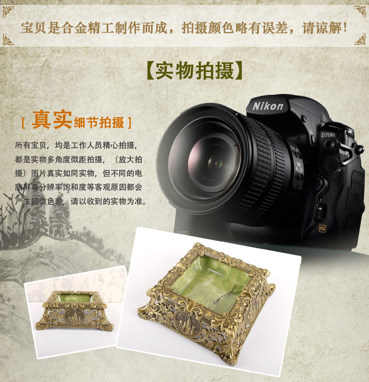 中式煙灰缸家用客廳大號個性輕奢仿古銅煙缸男生禮品家居軟裝飾品1入