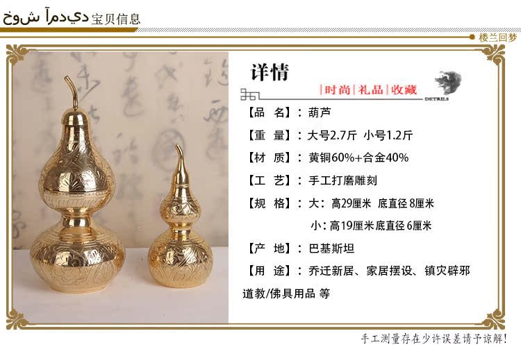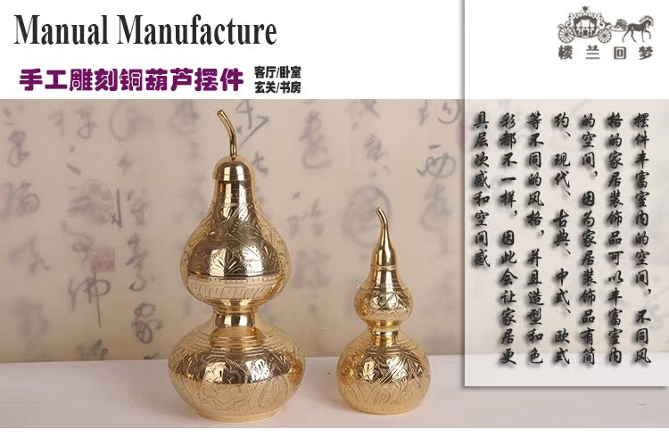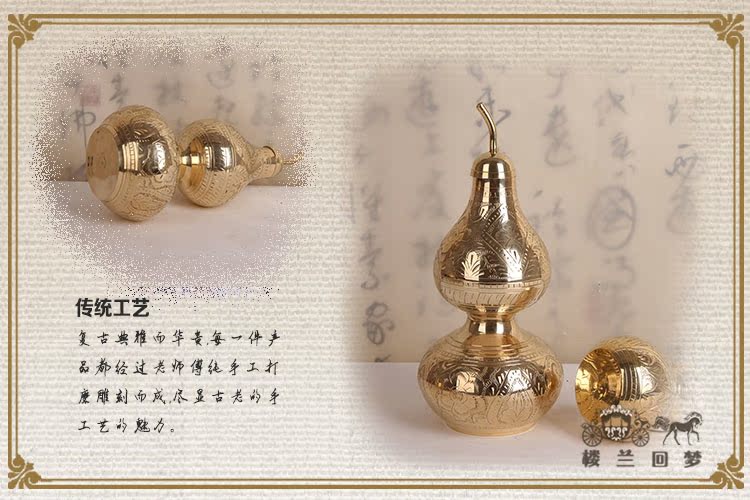 開光銅葫蘆風水擺件純銅鎮宅家居擺件銅葫蘆道教用品招財手工雕刻1入