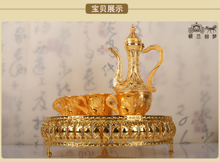 高盤酒具套裝古典合金酒壺酒杯托盤全套家居裝飾手工藝品酒具套件1入