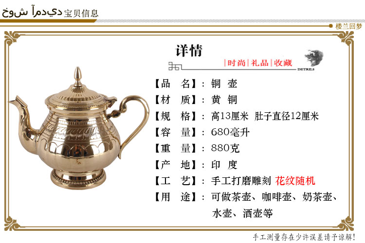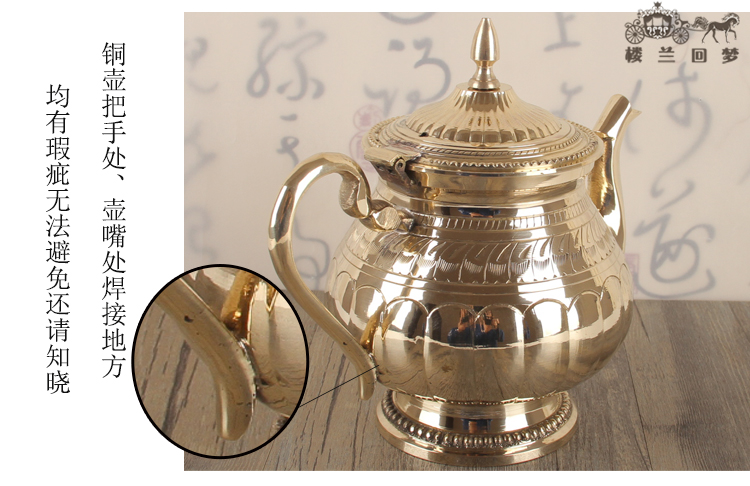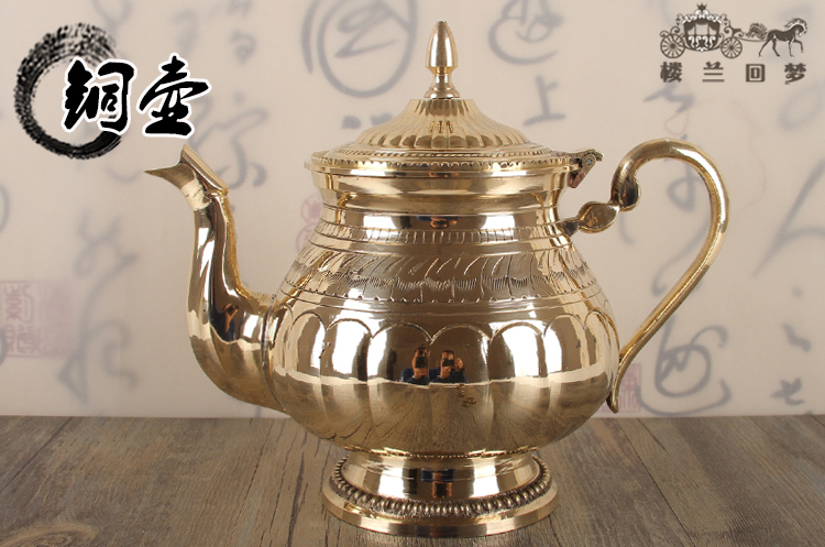 黃銅蒙古包壺特色餐廳民族銅茶壺純手工家用奶茶壺純銅茶壺泡茶壺1入