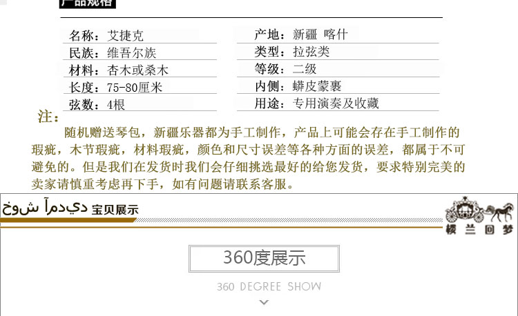 【艾捷克】新疆民族拉弦樂器專業級艾捷克大師傅制作杏木哈爾扎克1入