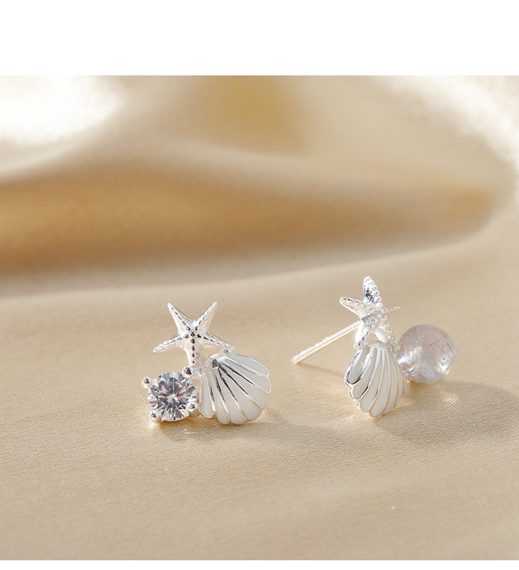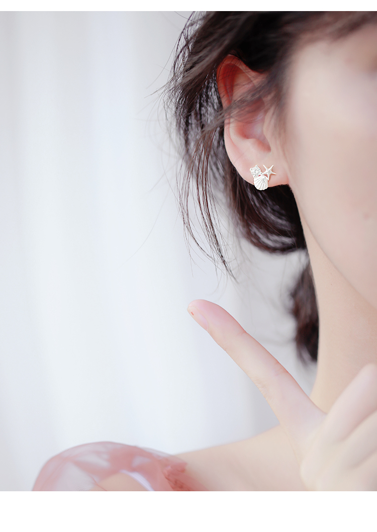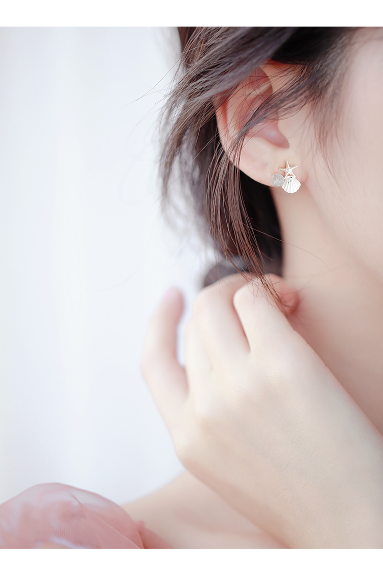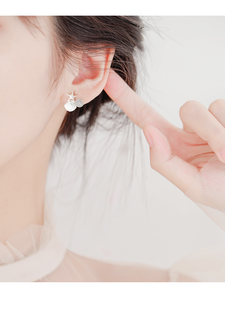 貝殼海星耳釘女簡約學生百搭清新氣質純銀耳釘小巧精致少女心耳飾1入
