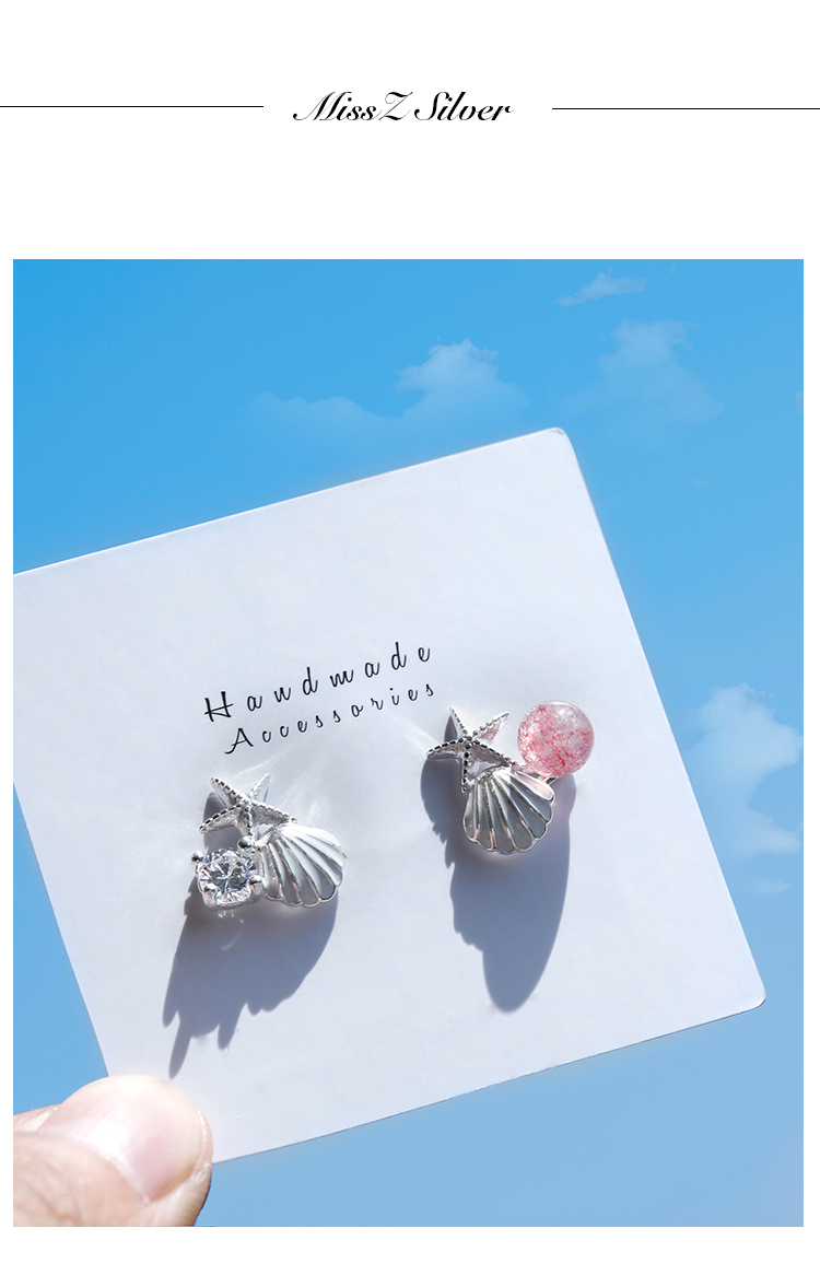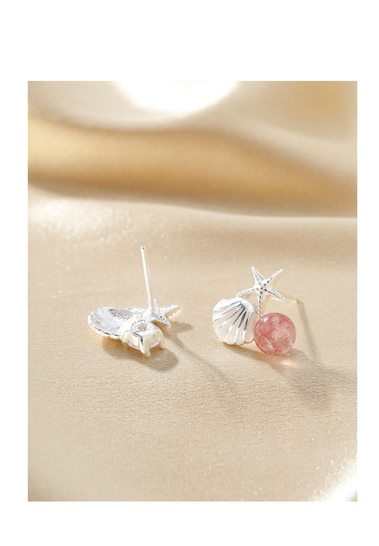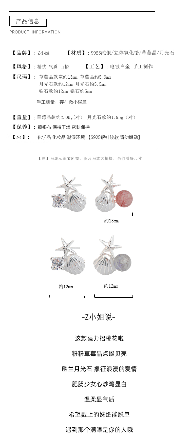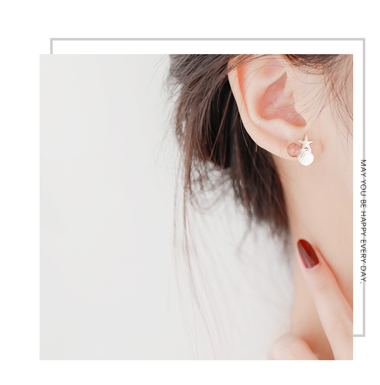 貝殼海星耳釘女簡約學生百搭清新氣質純銀耳釘小巧精致少女心耳飾1入