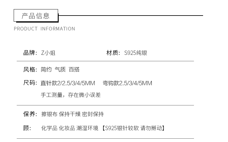 防過敏耳釘女純銀耳釘簡約女小巧養耳洞耳釘女氣質百搭耳骨釘耳棒1入