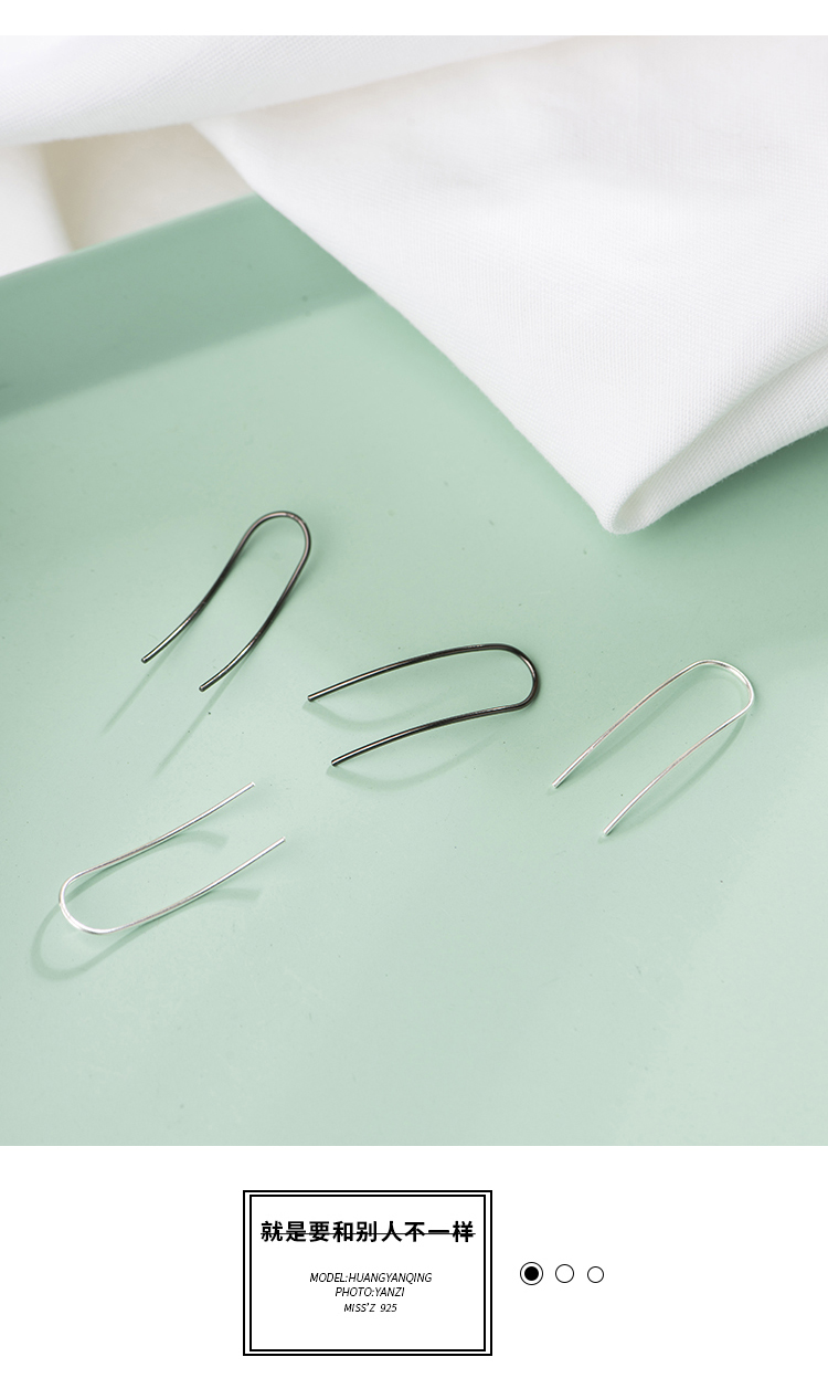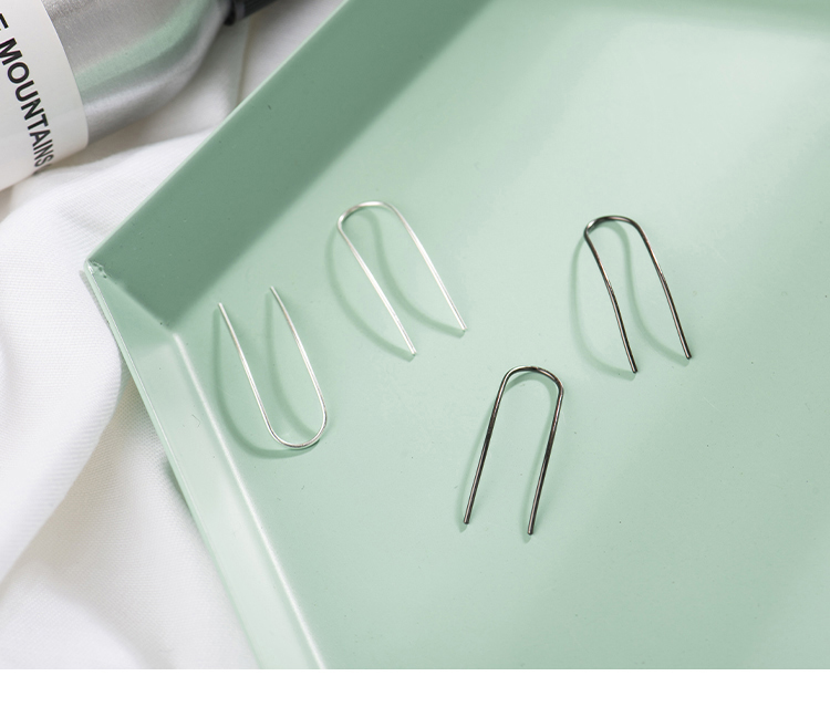 韓國個性新款U形線條耳釘女925純銀氣質防過敏簡約時尚百搭耳飾品1入