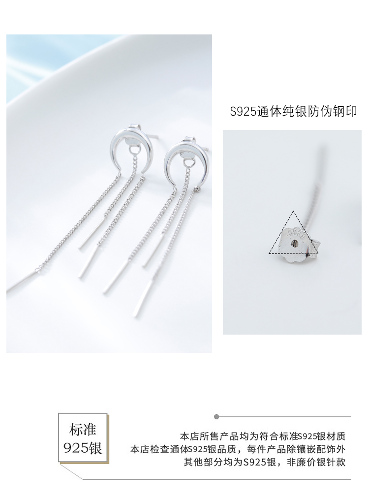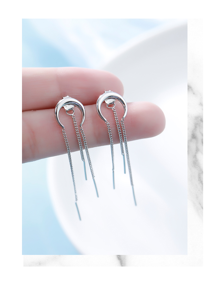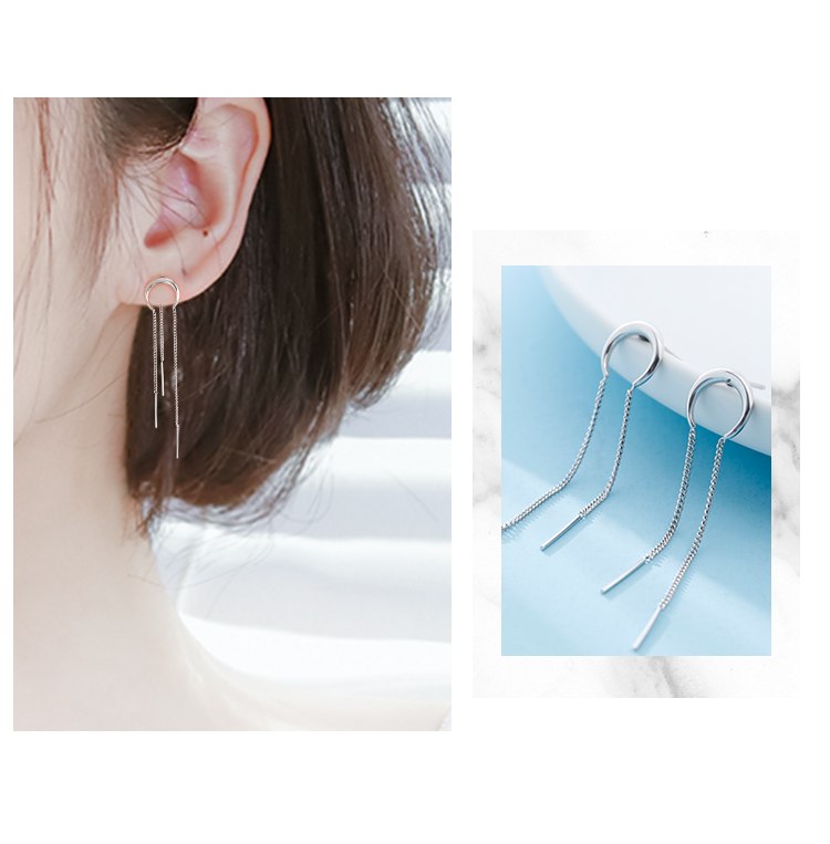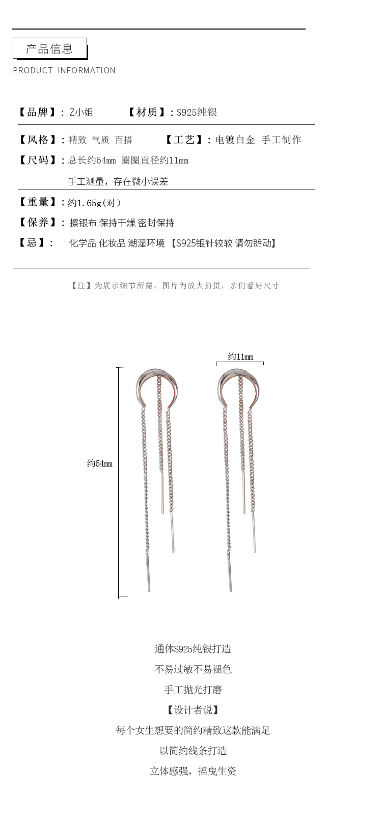 顯臉瘦的流蘇耳環女長款氣質網紅銀耳環耳釘簡約冷淡風耳墜女純銀1入