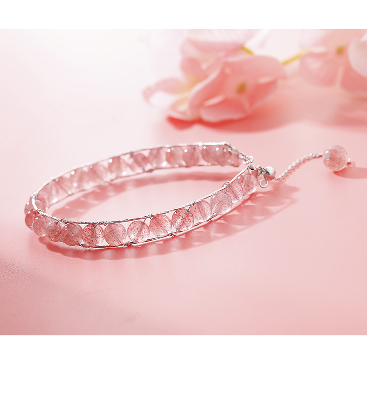 【Z小姐】14K包金手鏈女純銀草莓晶招桃花手鏈水晶手鏈小清新手飾1入