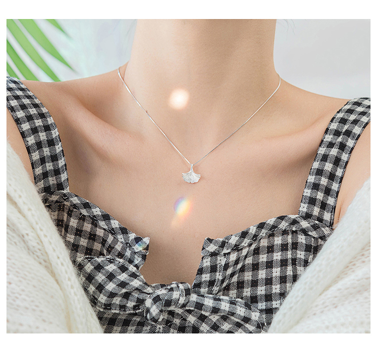 銀杏葉小眾設計項鏈女純銀網紅文藝小清新鎖骨鏈冷淡風森系銀項鏈1入