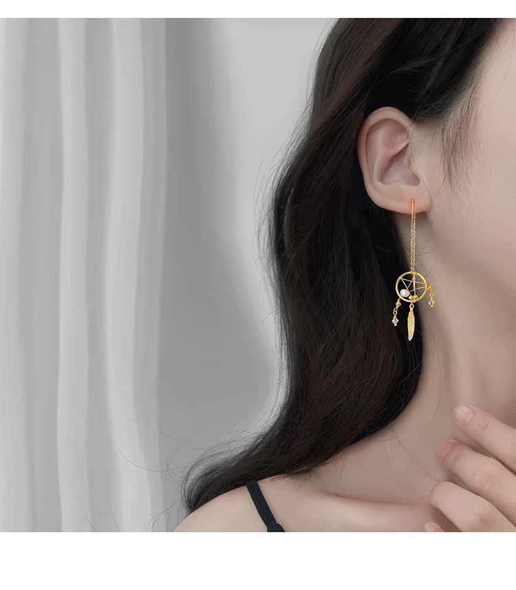【Z小姐】捕夢網顯臉瘦的耳線女氣質純銀簡約百搭仙氣耳環耳飾1入