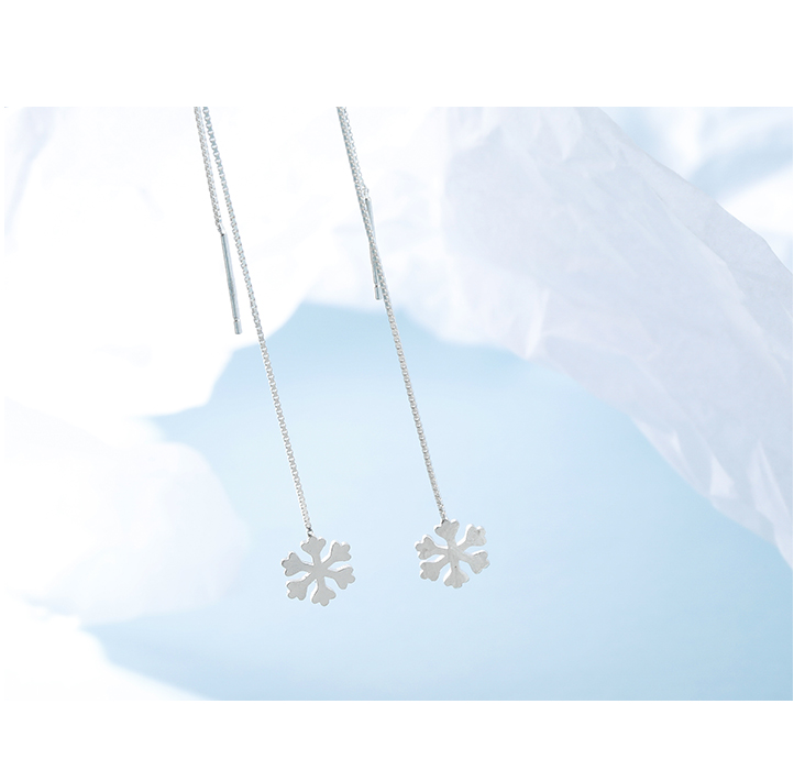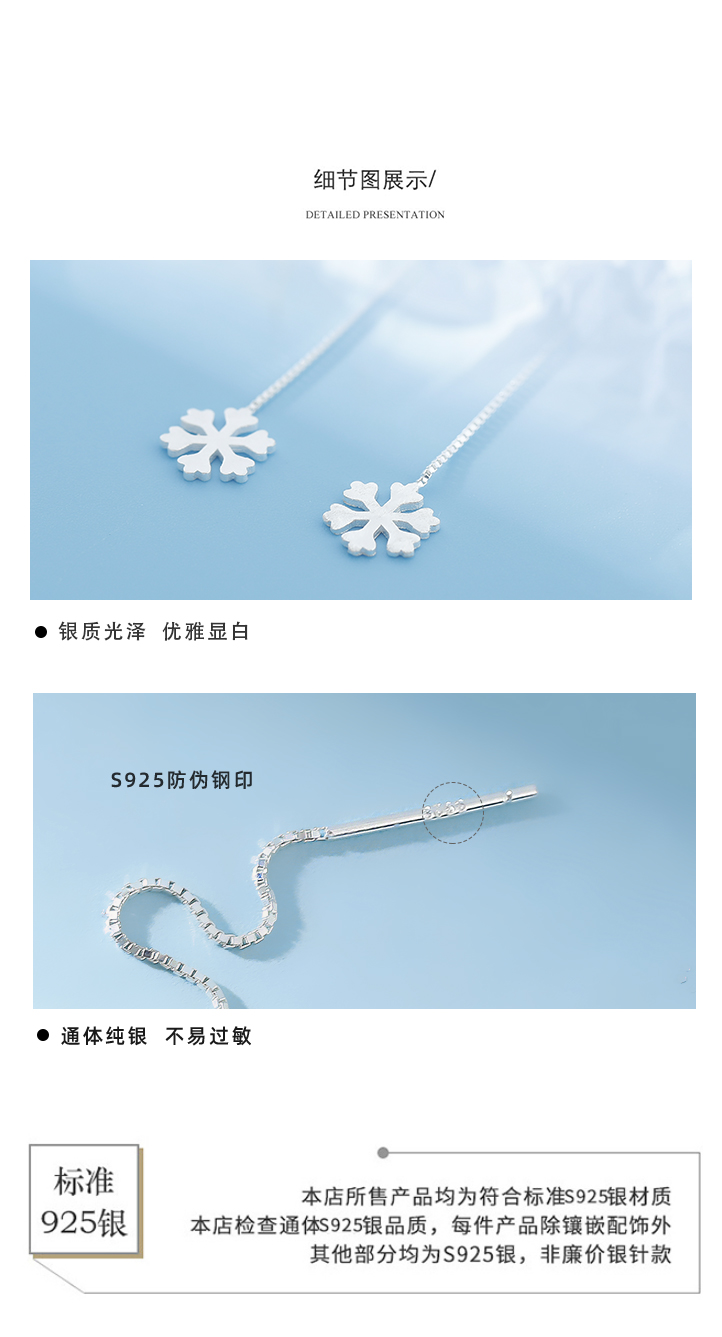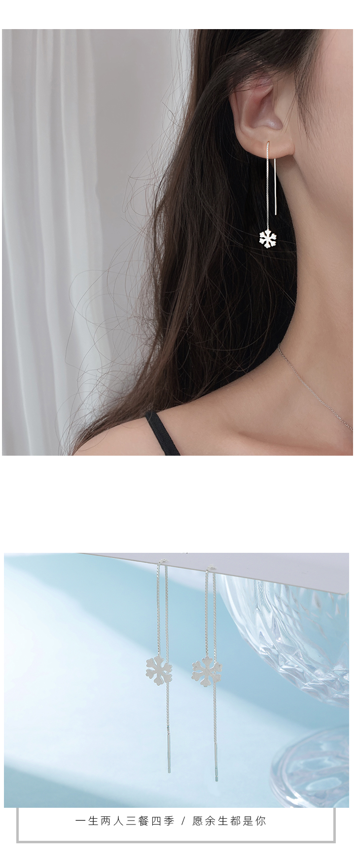 雪花耳線女簡約氣質925銀耳線女純銀耳鏈長款養耳洞顯臉瘦的耳線1入