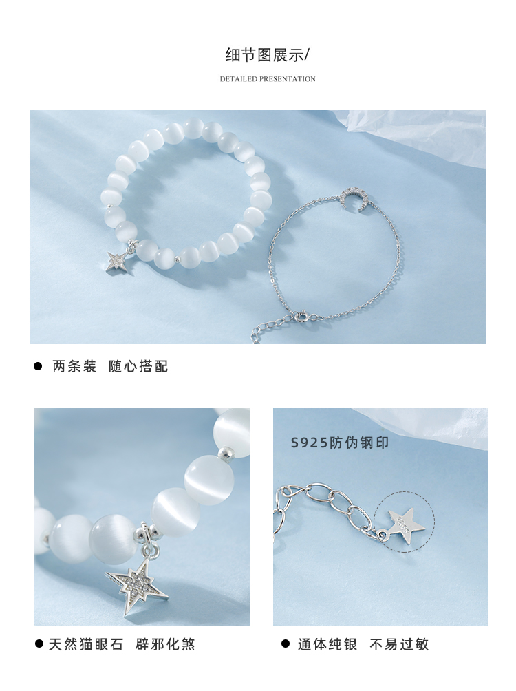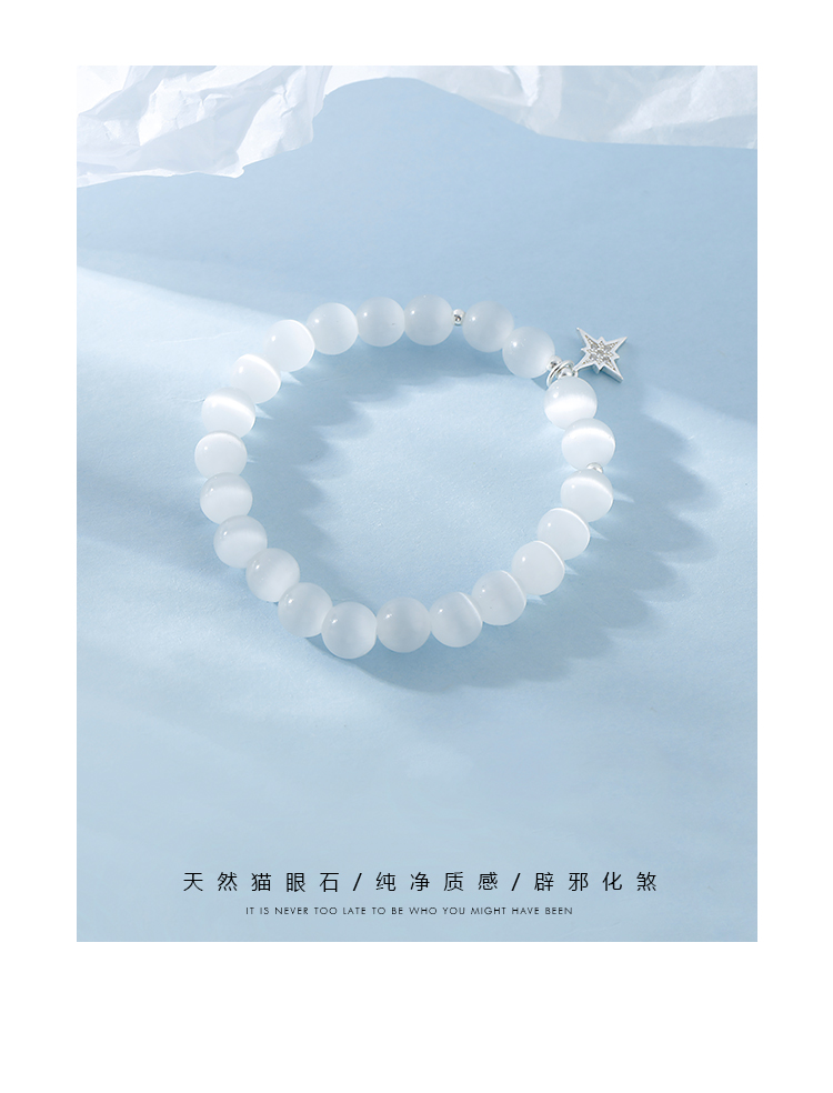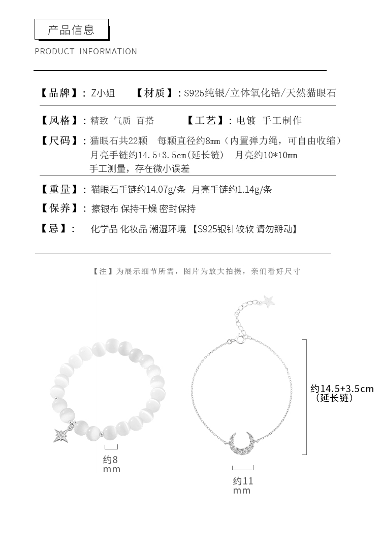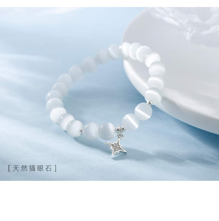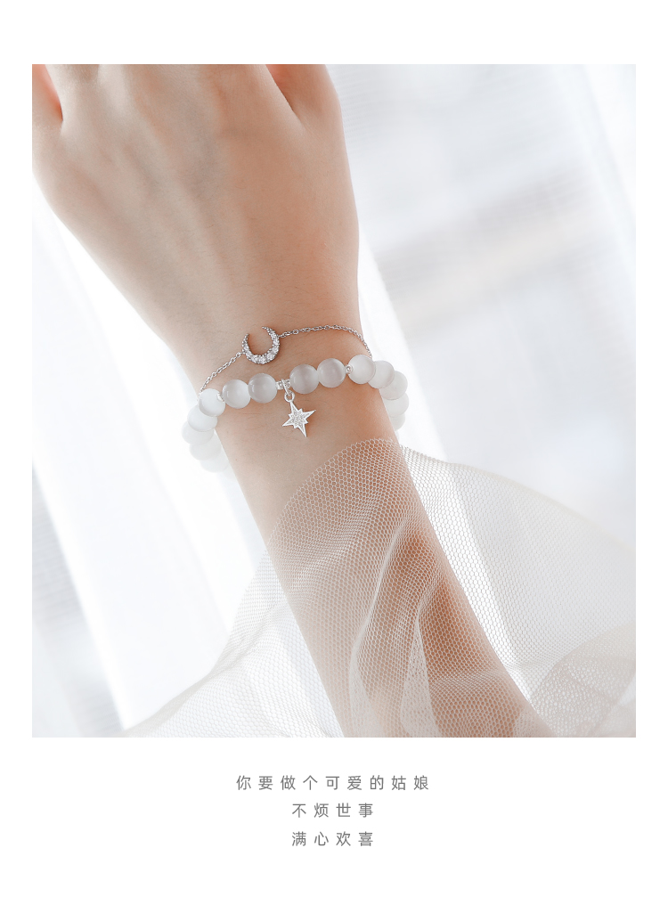 貓眼石手鏈ins小眾設計星月手鏈女純銀韓版簡約個性學生閨蜜手鏈1入