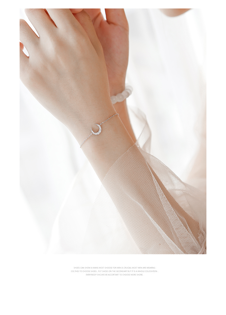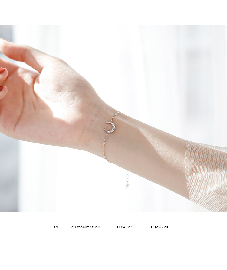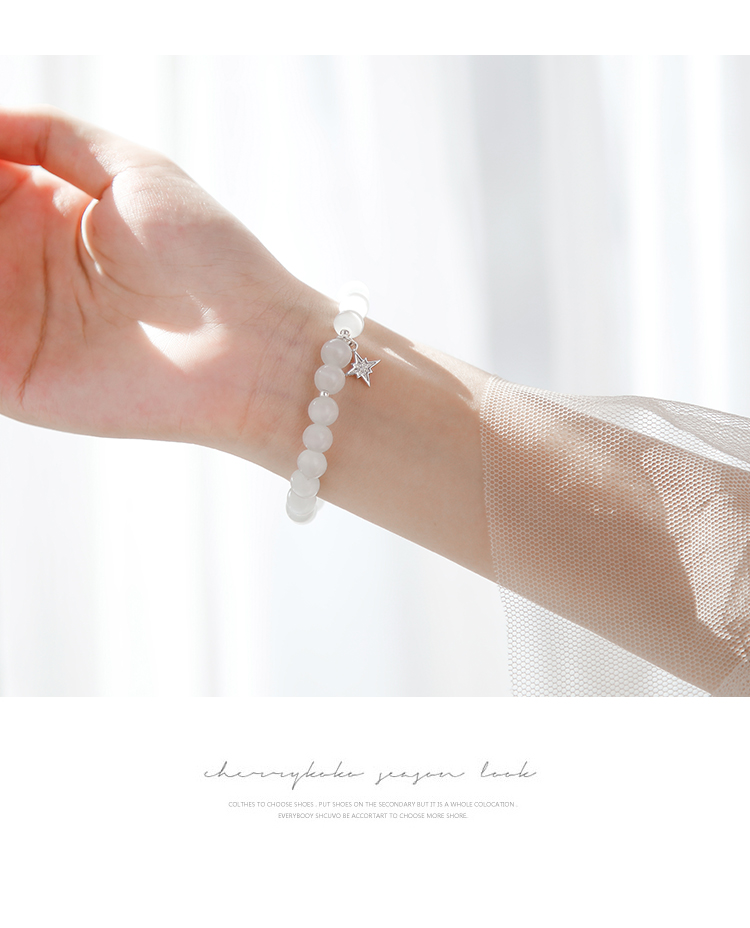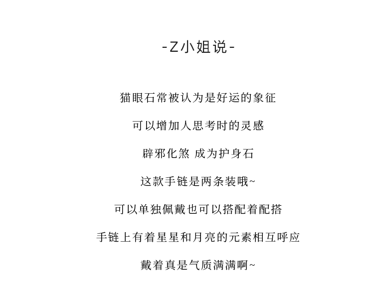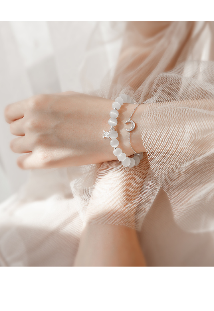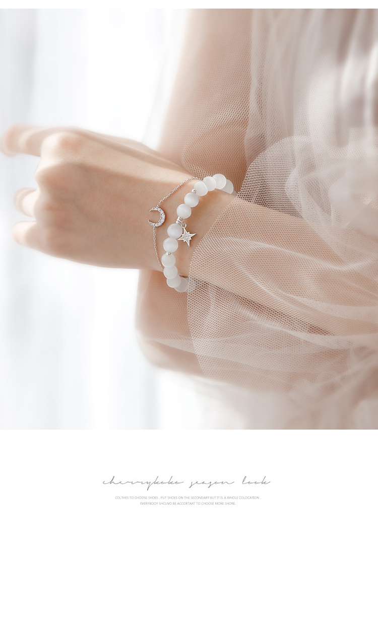 貓眼石手鏈ins小眾設計星月手鏈女純銀韓版簡約個性學生閨蜜手鏈1入
