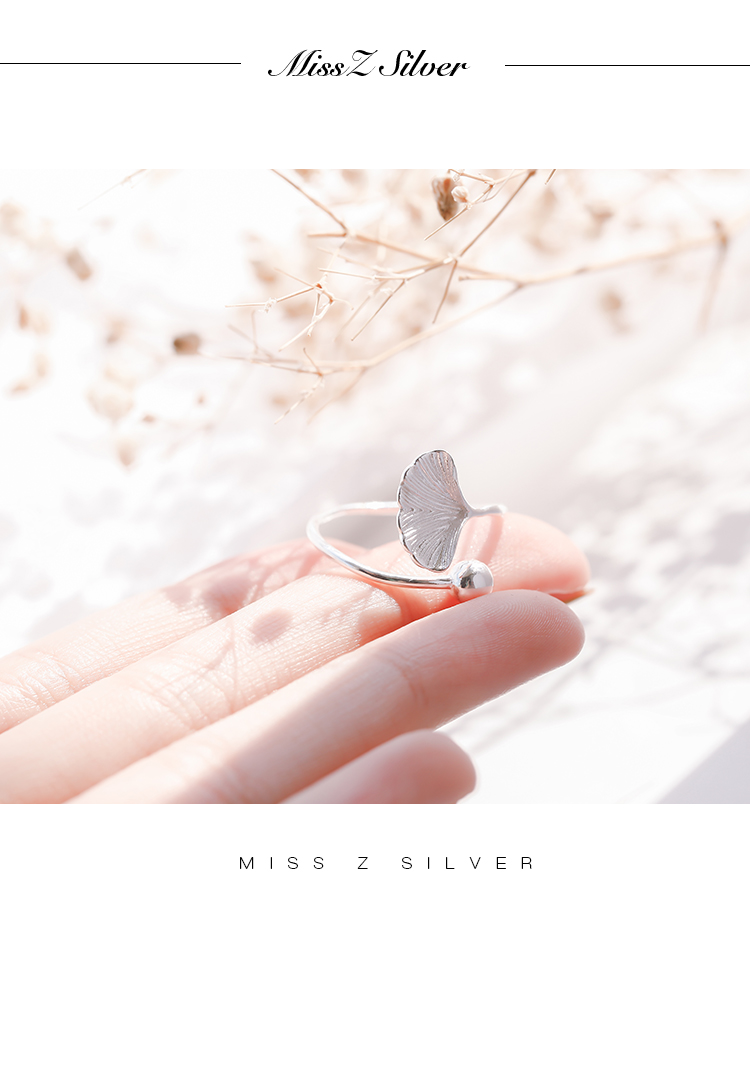 銀杏葉戒指女簡約森系學生文藝清新開口食指戒指女可調節純銀戒指1入