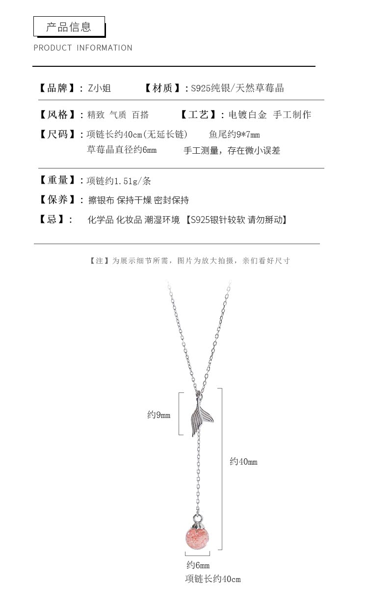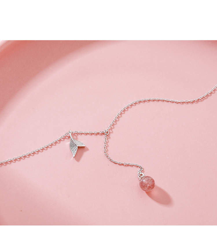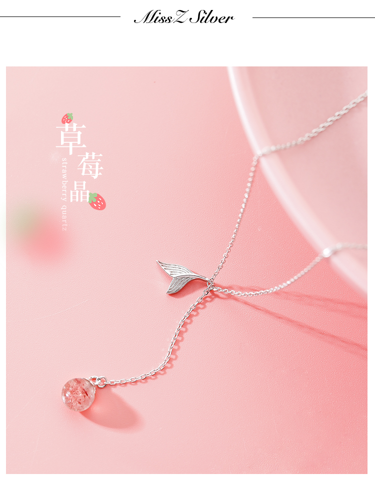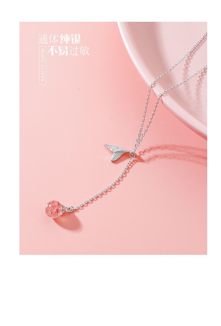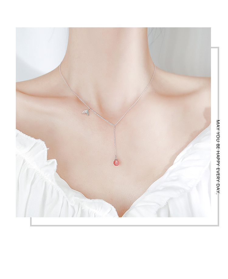 魚尾項鏈女純銀項鏈女韓版簡約個性氣質草莓晶鎖骨鏈仙氣少女甜美1入