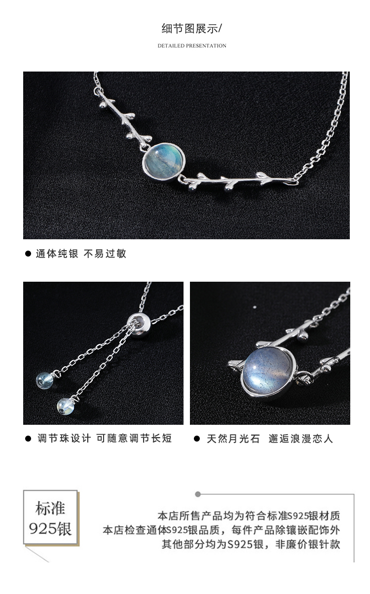 【Z小姐】月光森林月光石手鏈女學生簡約森系小眾設計純銀手鏈1入
