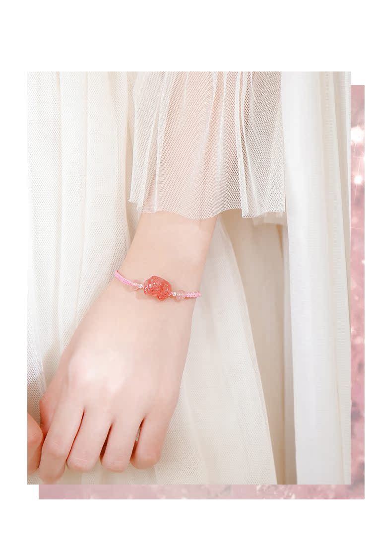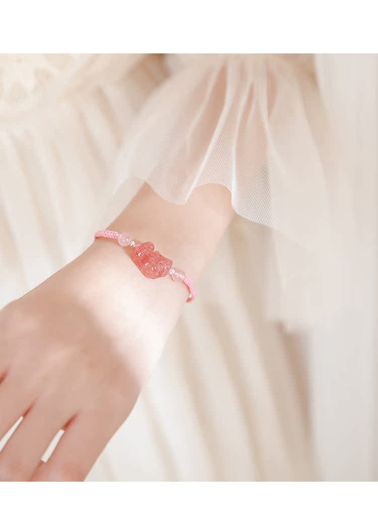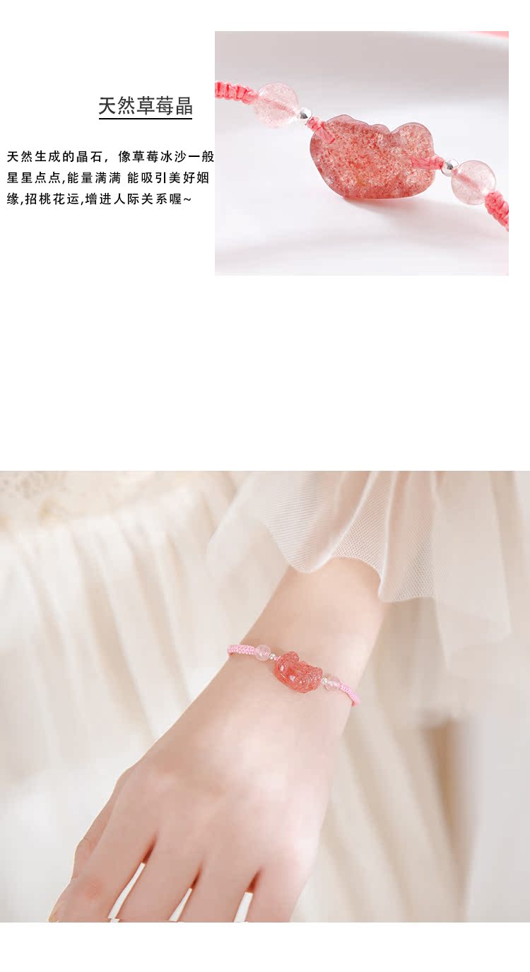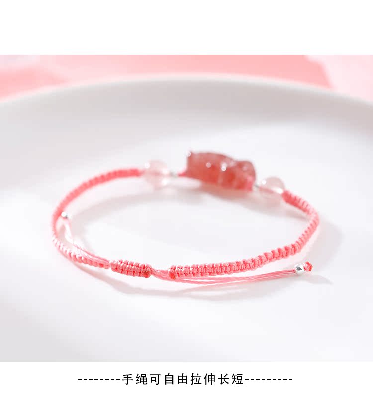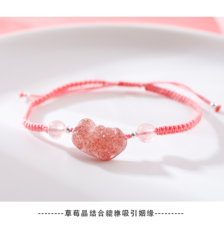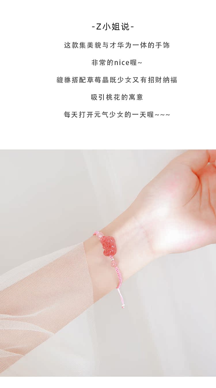 貔貅草莓晶手鏈女辟邪招桃花粉水晶轉運手鏈女簡約森系編織手繩女1入