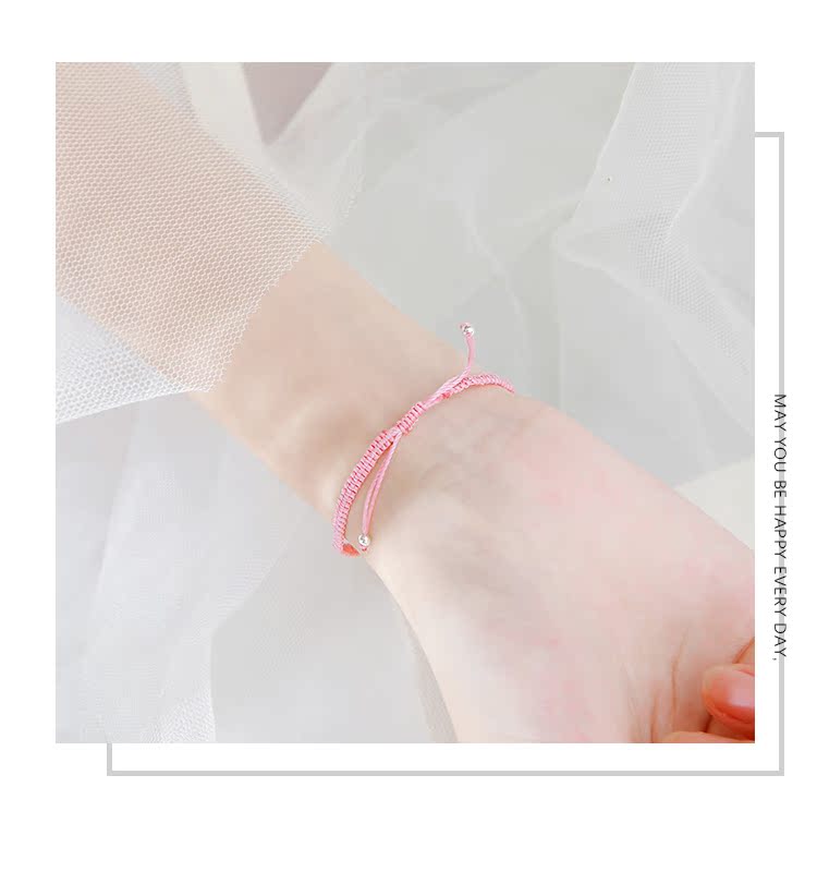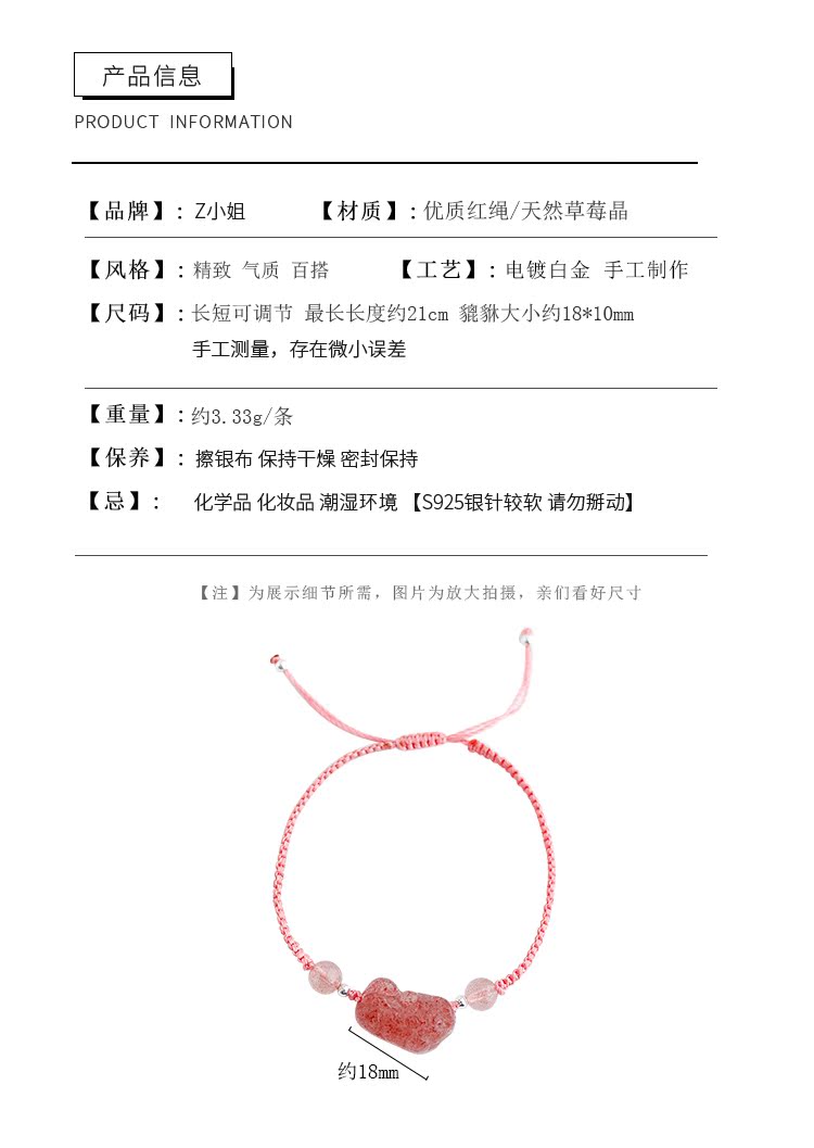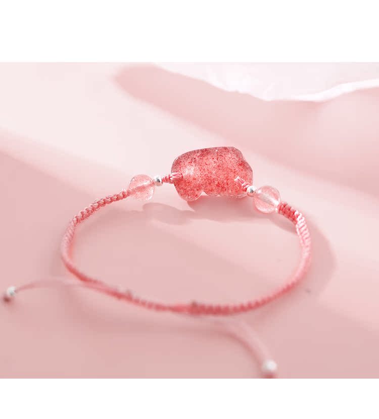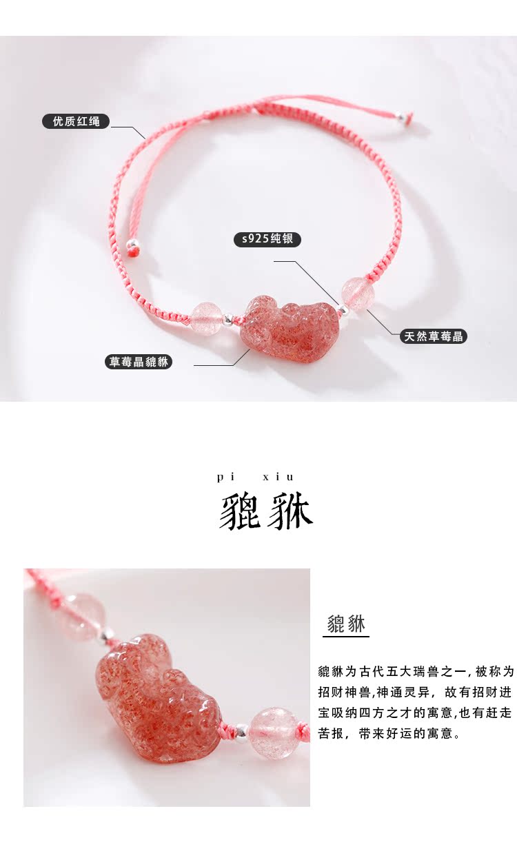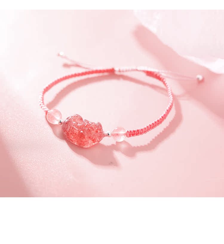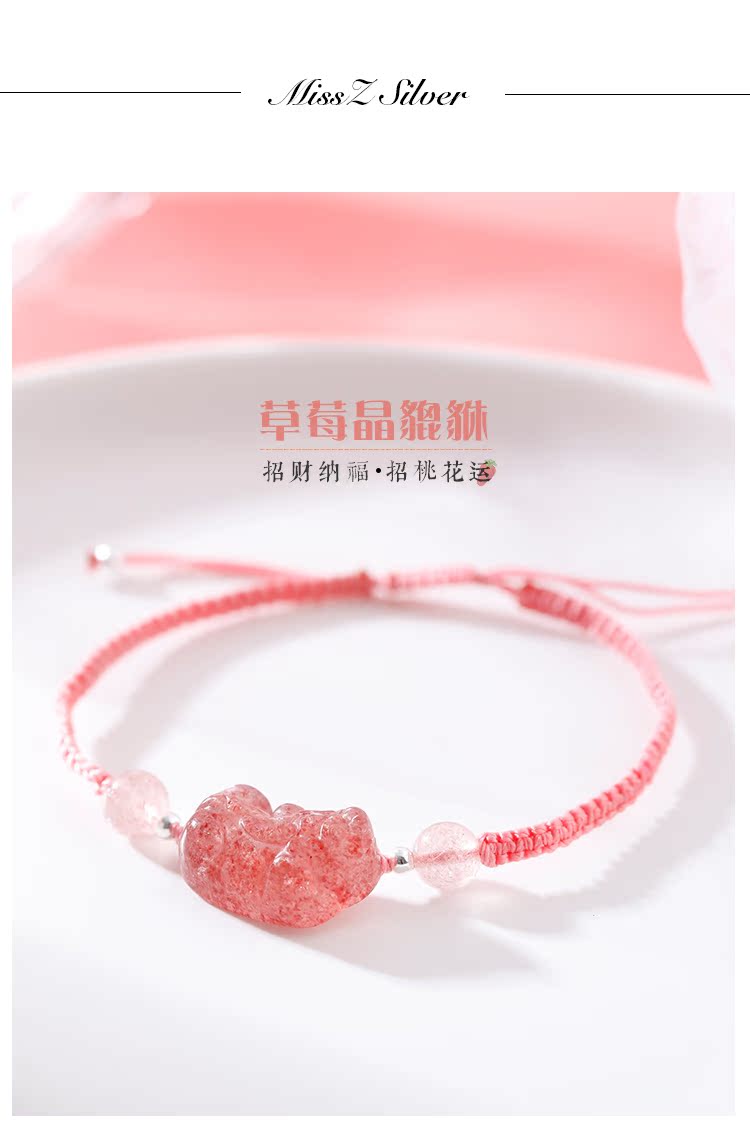 貔貅草莓晶手鏈女辟邪招桃花粉水晶轉運手鏈女簡約森系編織手繩女1入