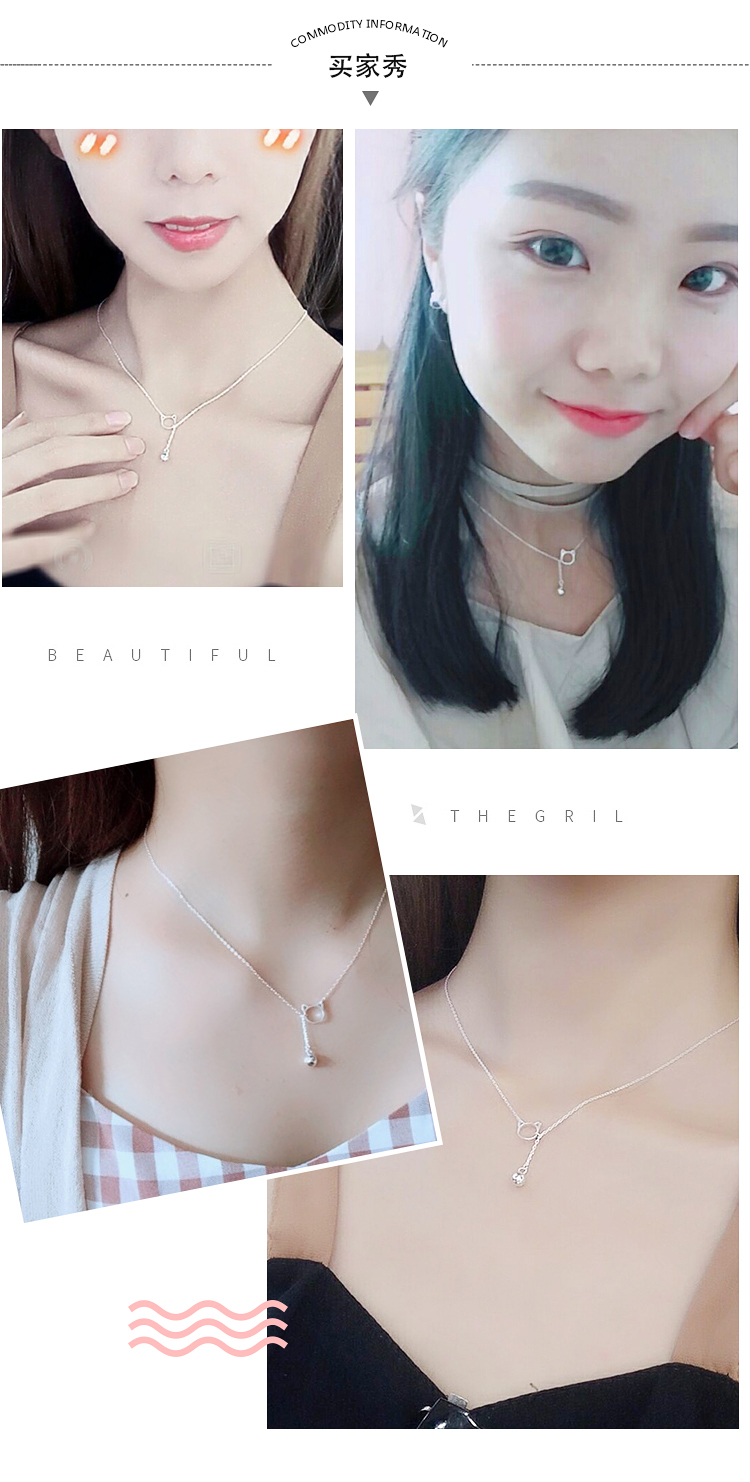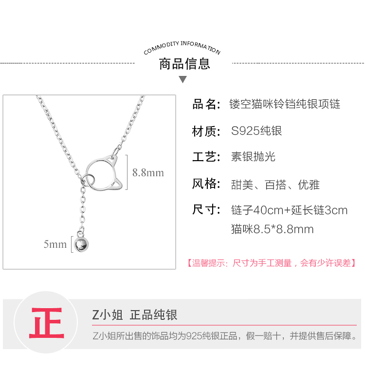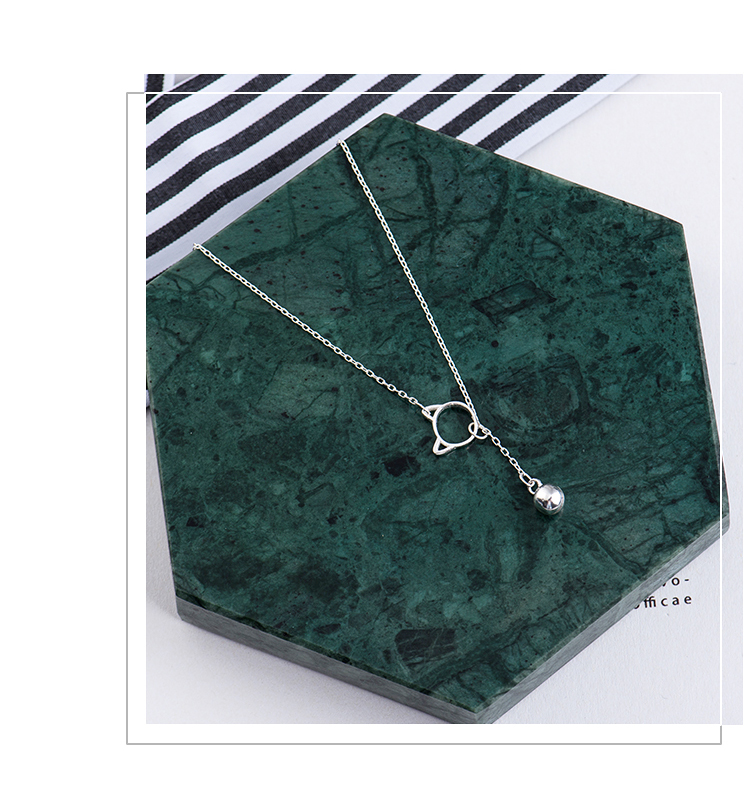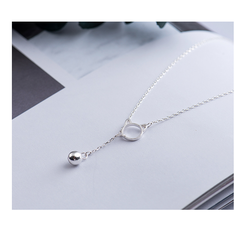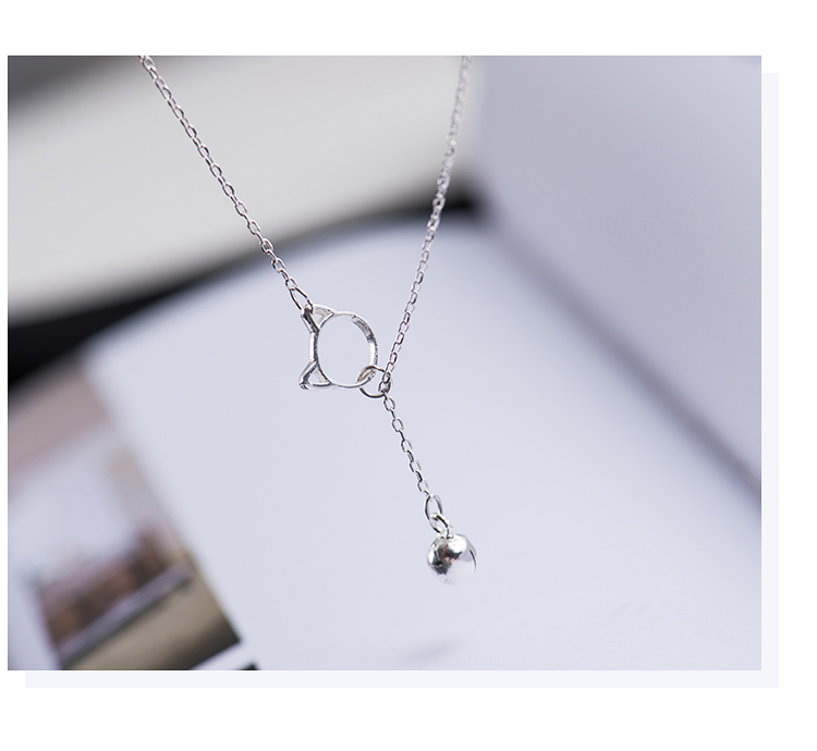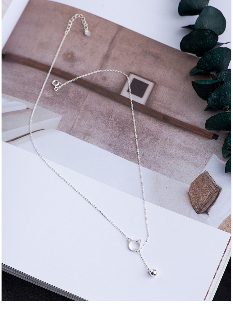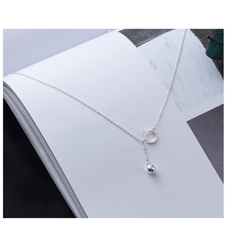 貓咪鈴鐺鎖骨項鏈女純銀韓版小眾鎖骨鏈簡約網紅氣質個性銀項鏈1入