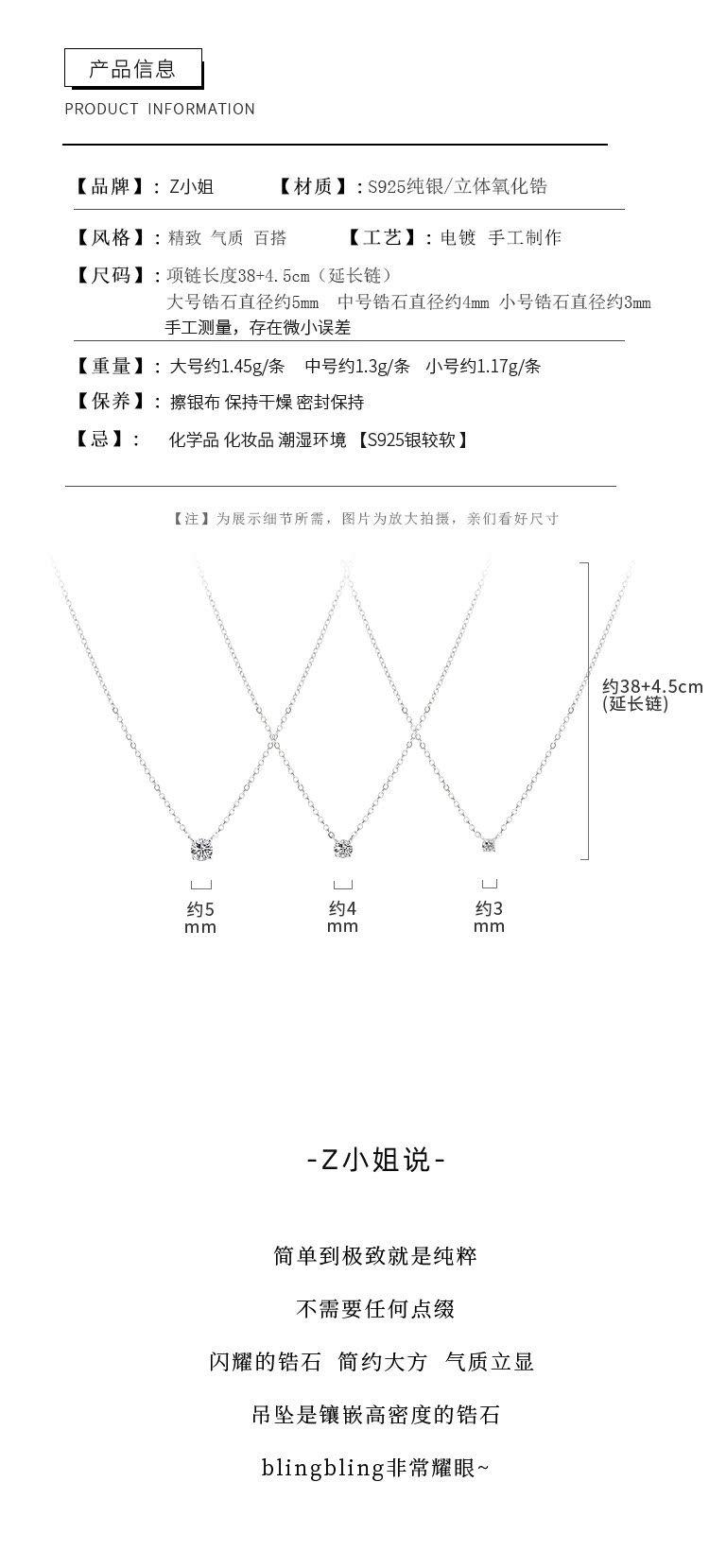 閃鉆項鏈女純銀項鏈女鎖骨鏈鎖骨項鏈女ins簡約冷淡風吊墜女百搭1入