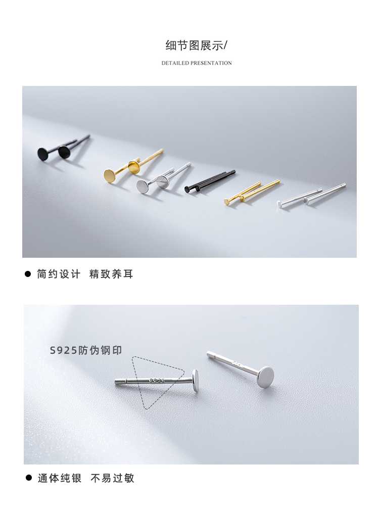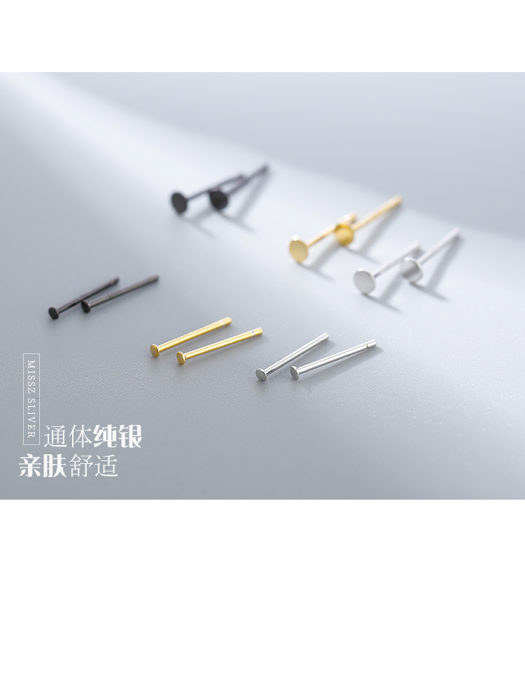 養耳洞耳釘女純銀小簡約耳棒純銀耳釘簡約女小巧銀耳釘防過敏耳飾1入