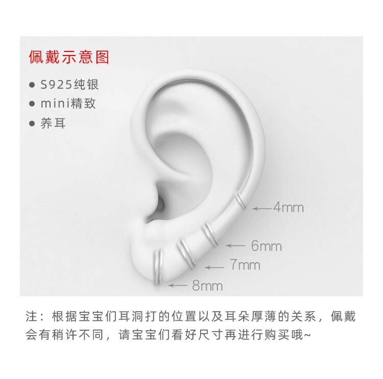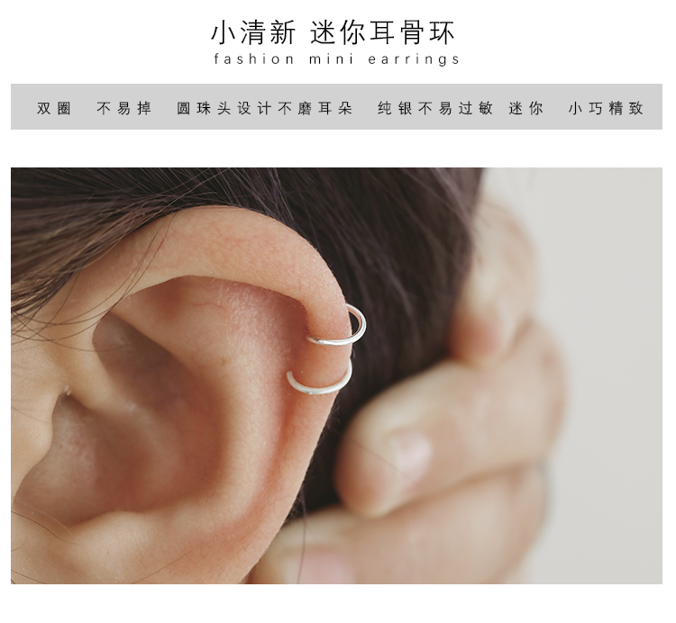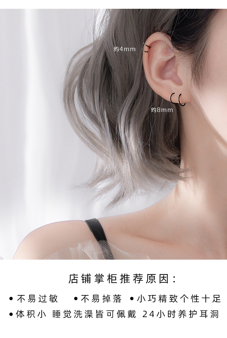 螺旋耳釘女純銀耳釘簡約冷淡風圈圈耳環女小巧耳骨釘耳骨環小耳圈1入