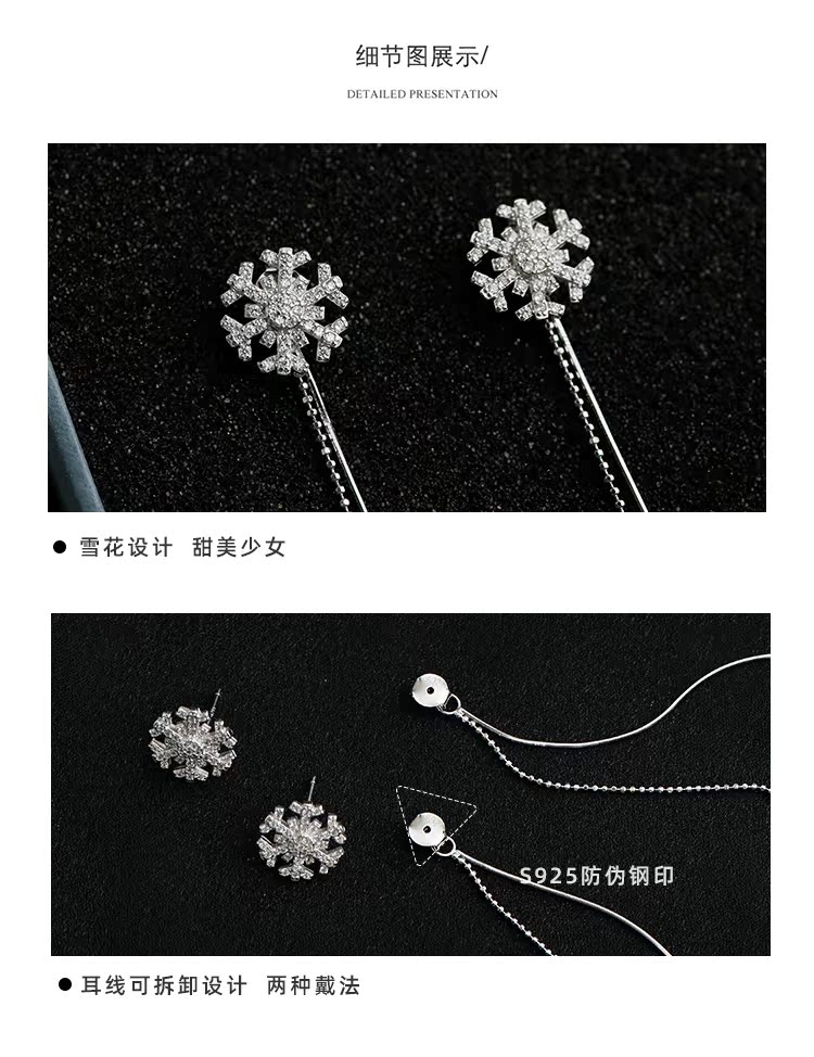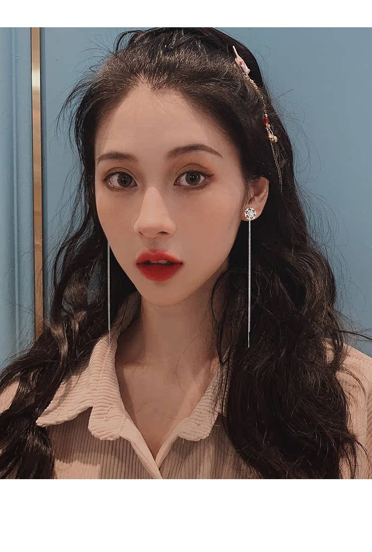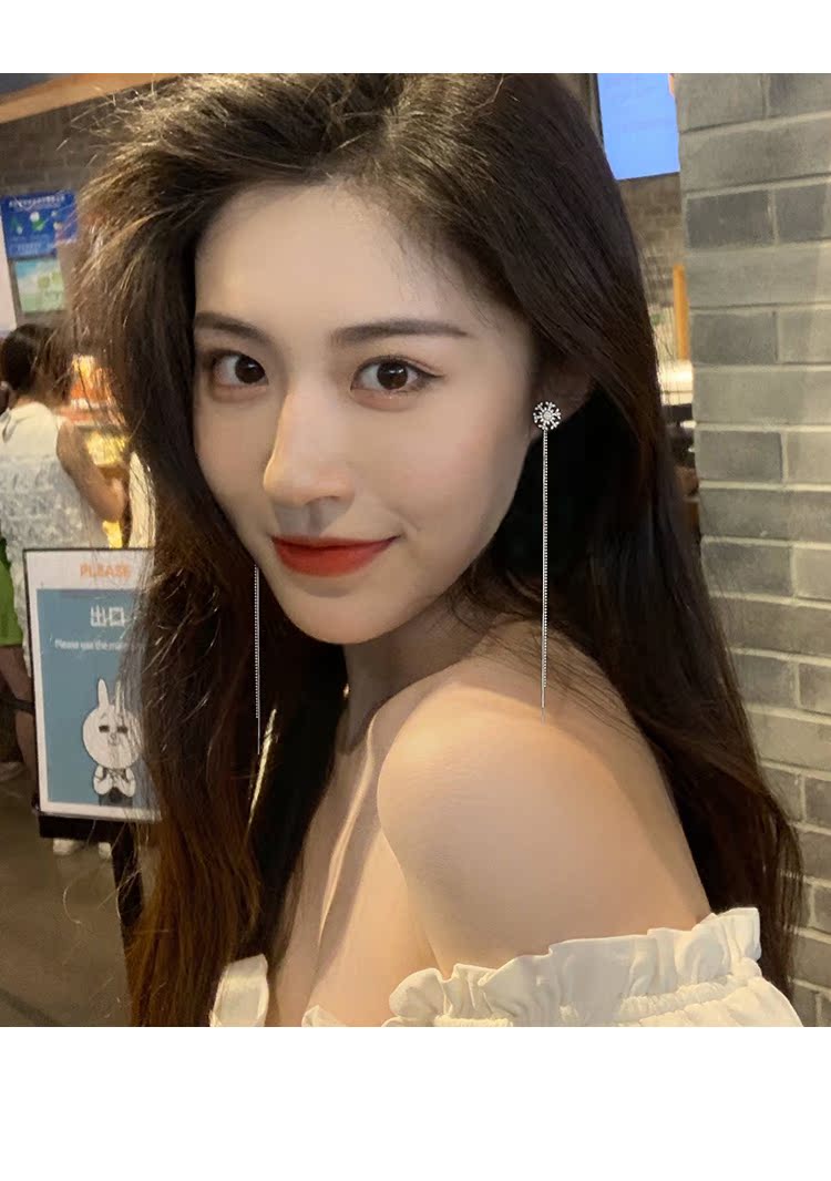 雪花耳環女長款氣質流蘇時尚耳環韓國氣質網紅耳飾爆款耳墜女純銀1入