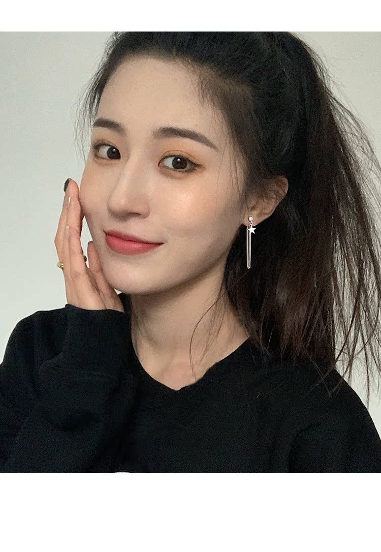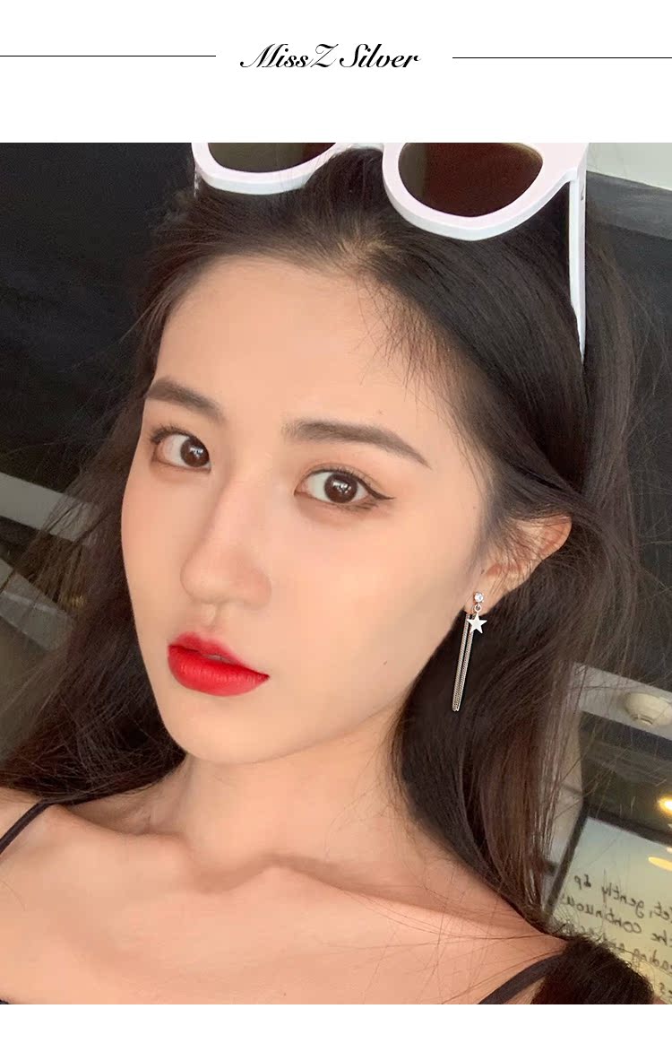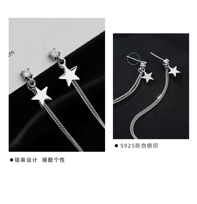 【Z小姐】星星耳環韓國氣質網紅后掛式耳環女純銀長款鏈條耳環1入