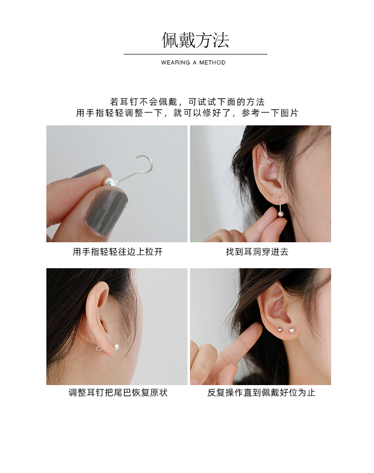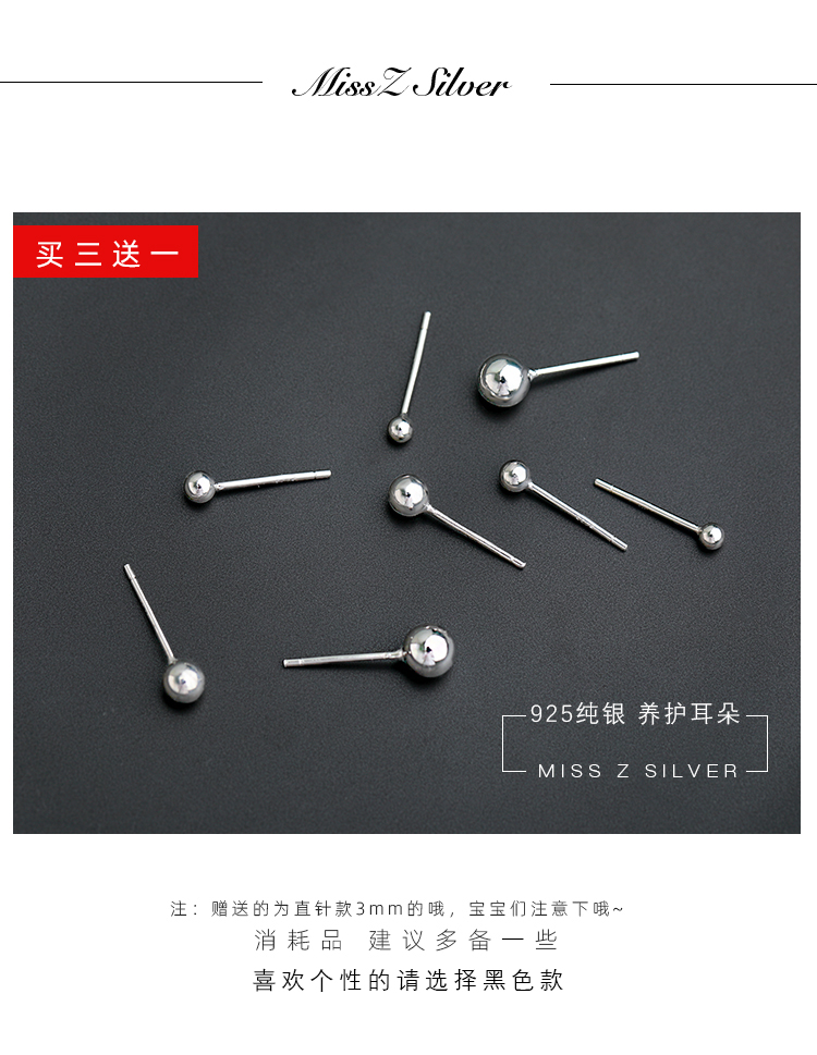養耳洞耳釘女純銀小耳釘簡約女小巧銀耳釘純銀防過敏耳骨釘女耳棒1入